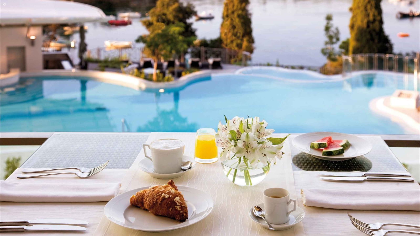 Effortlessly combining natural materials, luxury comfort, and elegant design, each of the 113 rooms come with balconies offering views over the pool, the garden, and the sea. Air conditioning, satellite TVs, and bathrooms with walk-in showers are standard throughout. During your stay you will have a choice of two restaurants to enjoy. The relaxed Mediterraneo offerring Mediterranean-style dishes and the fine-dining Wine Vault serving French cuisine and the option of a Chef’s table experience. You’ll also benefit from use of the Art Wellness Centre comprising indoor and outdoor pools, saunas, a gym, and a Mediterranean garden.