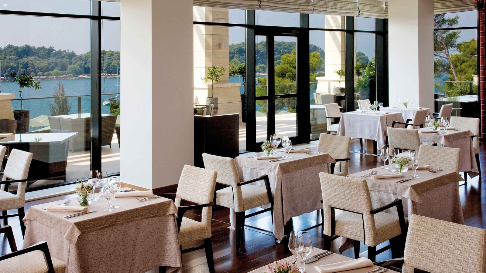 The five-star Monte Mulini occupies a covetable position just a 10-minute walk away from Rovinj’s town centre. Part of the exclusive Maistra Hotel Collection, guest at this boutique hotel will enjoy its surrounding lush parkland and bay views.