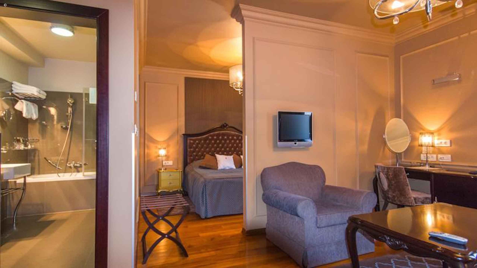 Each of the 28 luxury rooms features a display panel from which you can do everything from adjusting the room temperature to calling housekeeping and activating a “do not disturb” sign.? Relax at the Kristal aperitif bar and enjoy a cocktail, tea, or coffee, while you gather an appetite. Then make your way to the restaurant for a meal of finely-crafted Mediterranean and local dishes. You can choose to dine al fresco on the terrace if you’d like to catch some sun.
