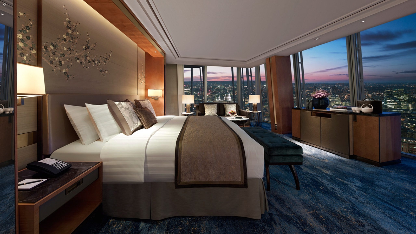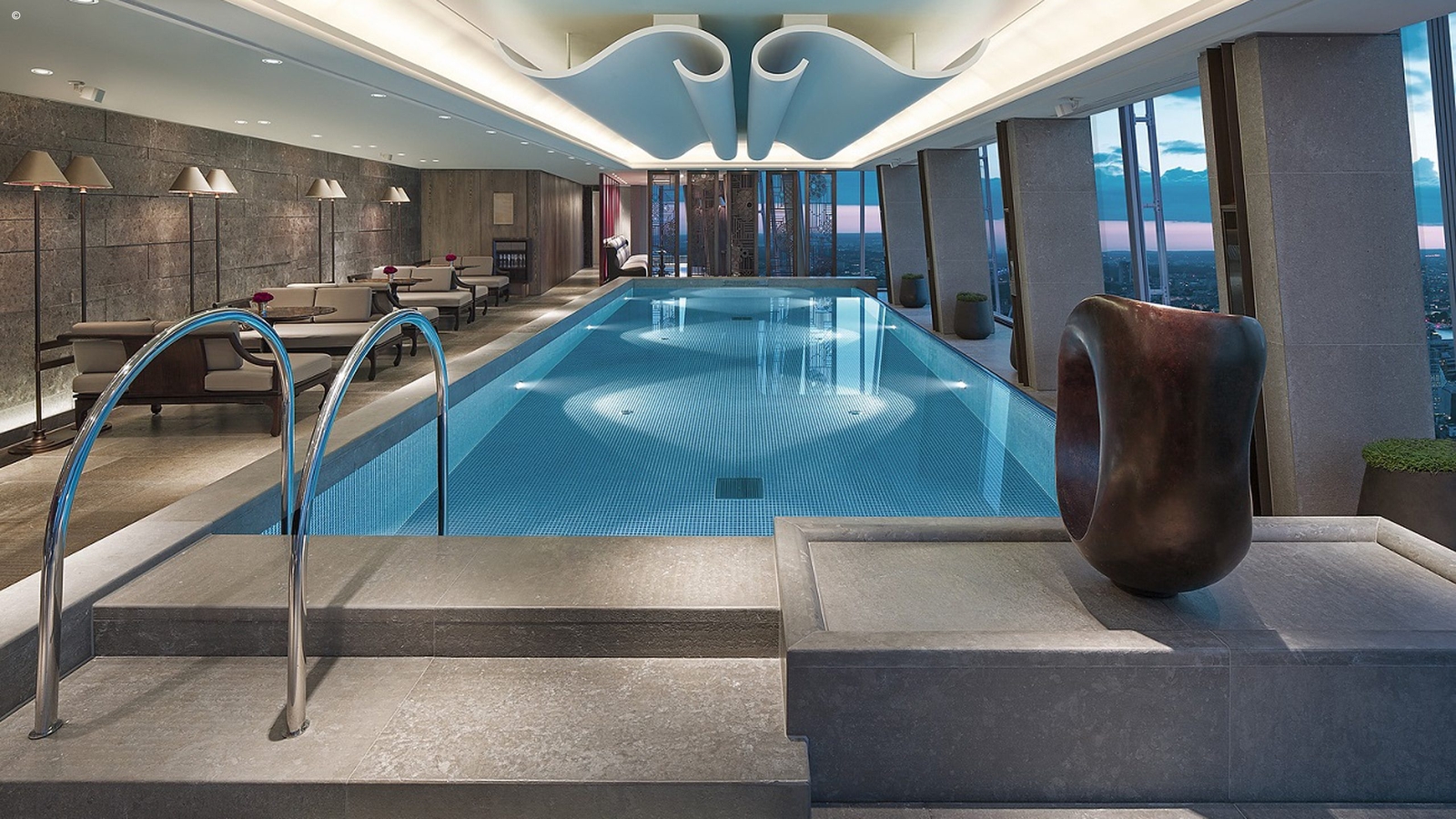 The opulent Ting Restaurant with its turquoise and gold colour scheme, offers modern European cuisine with subtle Asian influences. For a slice of daytime decadence, indulge in afternoon tea in the lounge. As evening falls the city looks particularly magical, its cloak of darkness punctuated by a sea of twinkling lights. Guests are advised to head to Gong bar and enjoy a cocktail or a glass of rare vintage champagne.