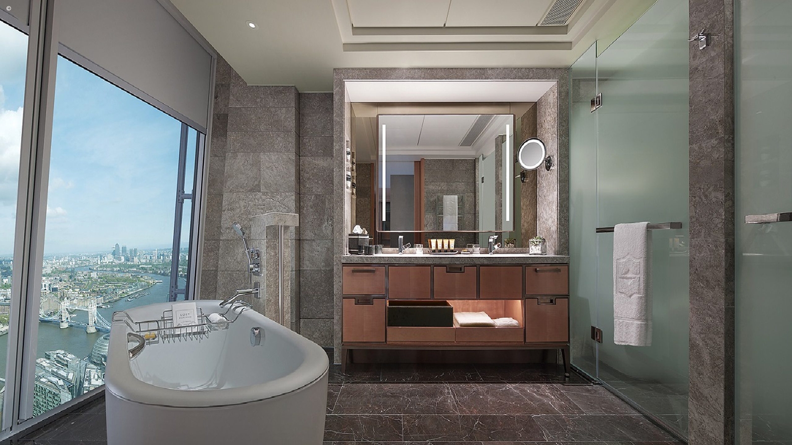 The views from the hotel are unrivalled and each room features floor-to-ceiling windows looking out across the city and as far as the neighbouring counties of Kent, Surrey and Sussex. The mighty Thames snakes its way across the landscape, tiny red busses trundle across the bridges and trains slink in and out of London Bridge. A pair of binoculars are provided in each room so you can get a close up of life in this fascinating urban patchwork.