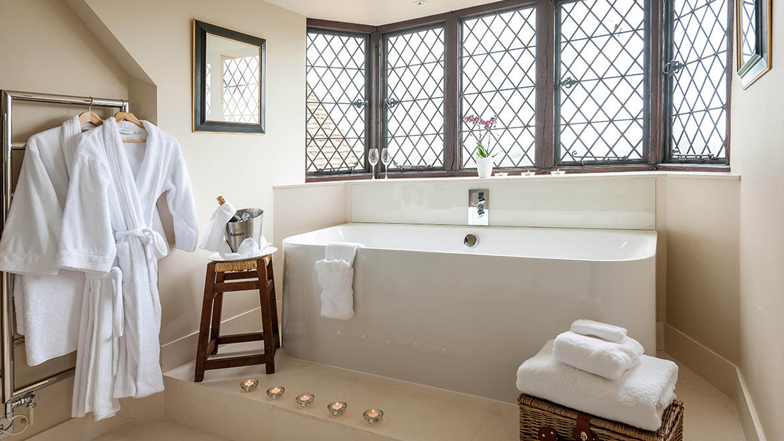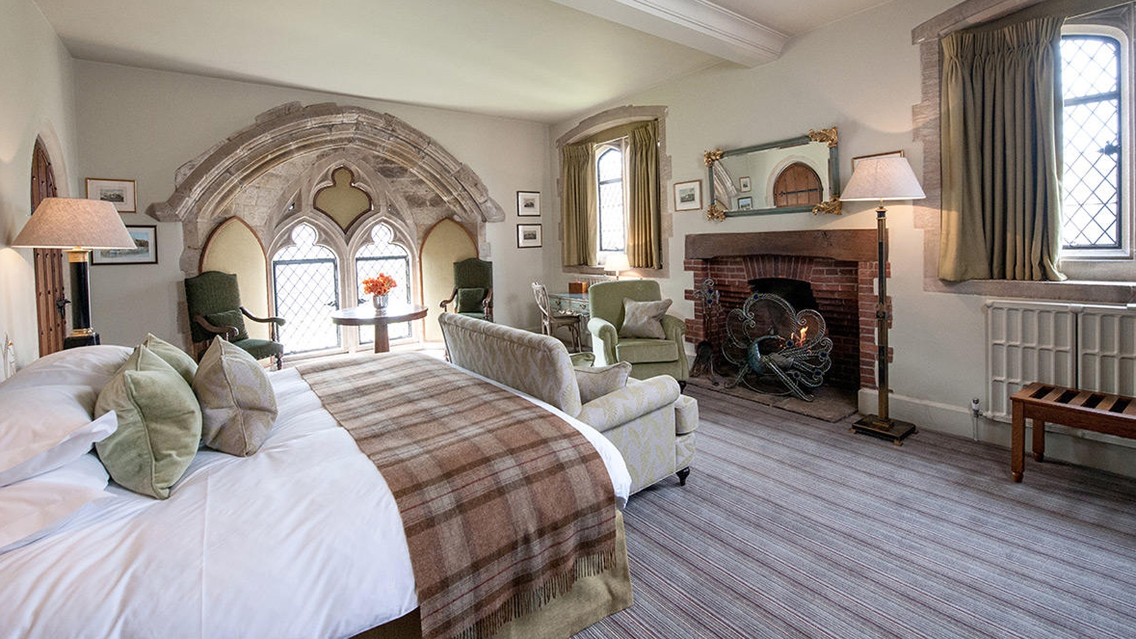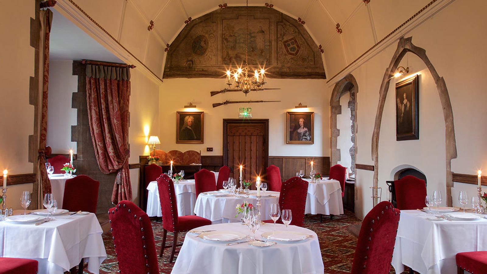 The 19 luxury rooms are each individually designed and feature antiques and rich fabrics paying tribute to the castle’s history, as well as modern en-suite bathrooms. The stylish and comfortable rooms offer views out over the 17th century manor house, gardens, lakes or countryside. Settle into a room with access to the 14th century tower, opt to stay in the charming former 17th century dairy, or choose a room with access to the battlements, with views of the castle grounds.