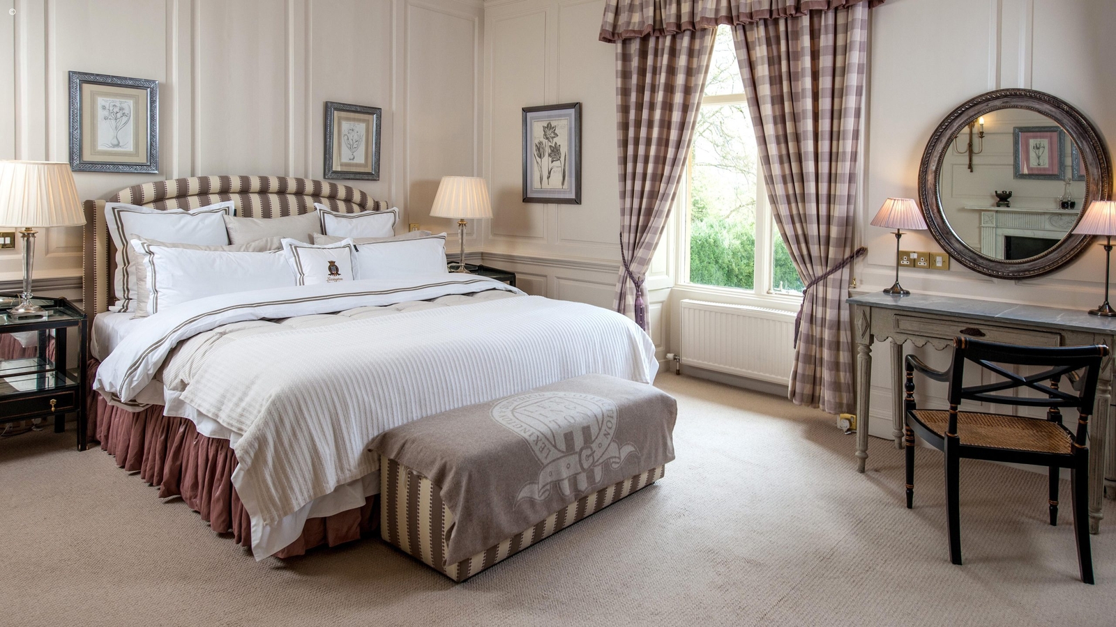 The hotel sits in five acres of landscaped gardens, filled with roses, fragrant lavender and tinkling fountains. There is a croquet lawn and a tennis court for those who want to partake in these most British of sports. When you want to relax, sit back with the papers in the lounge, take a seat in front of the crackling fire in the library or retire to the billiards room.