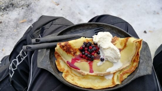 When I was first told we were going to have lunch in the wilderness, my expectations weren’t very high. Then, I got to watch how the team cooked pancakes over an open fire before my eyes, and my stomach suddenly peaked with interest. Topped with fresh berries and cream, these pancakes are still the best I’ve ever tasted!