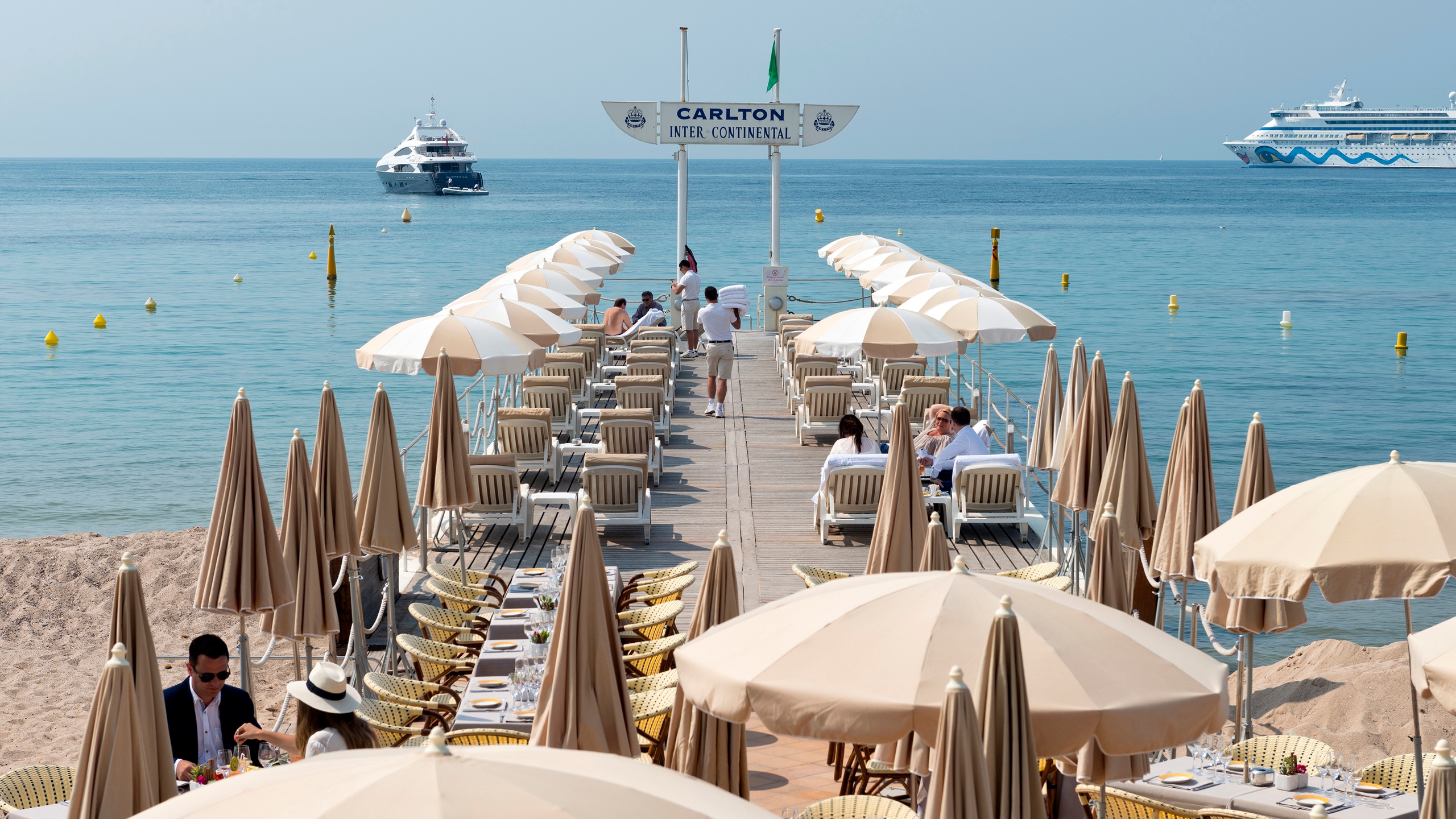 The Riviera restaurant offers you a sweeping sight of the Mediterranean as you savour seasonal dishes fusing the flavours of France and Italy. To dine with your toes in the sand, head to the Carlton Beach Club for long lunches or atmospheric apéritifs while gazing out to the emerald islands of Lérins. Carlton Cannes also features a tea lounge where an expert sommelier pairs decadent sweets with a curated selection of teas.