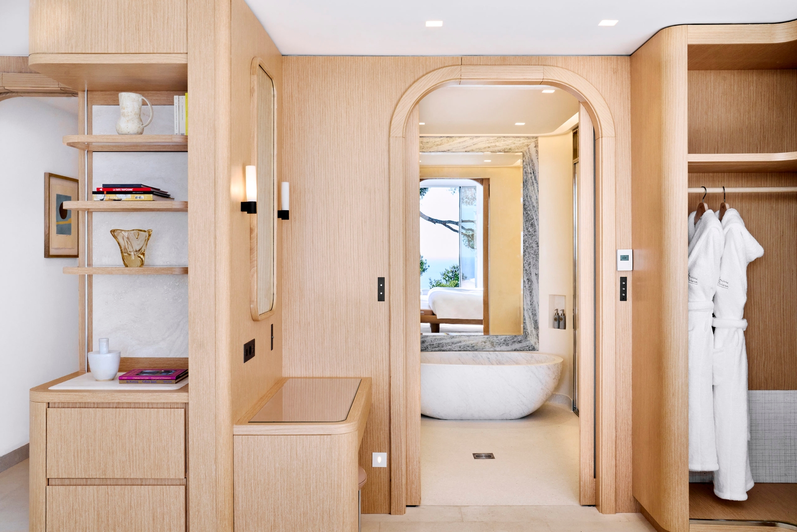 The striking modernist architecture of The Maybourne Riviera emerges from the rocky peninsula of Roquebrune-Cap-Martin as if forging its way into the glistening Mediterranean Sea. The hotel is perfectly positioned between Menton and Monaco, with views across warm terracotta rooftops, olive groves and citrus trees, out to the azure horizon.Step inside and you’ll find unique spaces created by celebrated designers and architects, inspired by the movement of the sea, the verdant landscape and the spectacular views. There are 69 rooms at the Maybourne, including 29 suites, across 14 different categories. The furniture, decor and design of all the rooms showcases the impeccable modernist style. Step out onto your private terrace as the sun slowly sets over the sparkling Mediterranean Sea. When it comes to dining, world-renowned chefs Mauro Colagreco and Jean-Georges Vongerichten have been inspired by the rhythms of the land and sea. There are several dining options, including fine dining through to relaxed, chic poolside snacks and light meals. Two hotel bars are devoted to capturing the essence of the perfect sundowner atmosphere with beautiful blends of cocktails, fine wines and champagne.