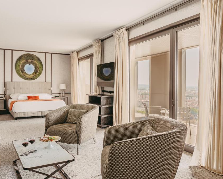 Perched gracefully upon the hill of Fourvière, where the echoes of the Gallo-Roman civilisation reverberate, lies Villa Maïa. This villa gazes upon a panoramic view that stretches from the lush gardens below to the distant tapestry of the city’s rooftops. The decor of the suites and rooms are masterfully curated, seamlessly blending with the site’s timeless allure. The bathrooms feature Carrara marble and polished nickel, their glass partitions granting connection to the bedrooms.