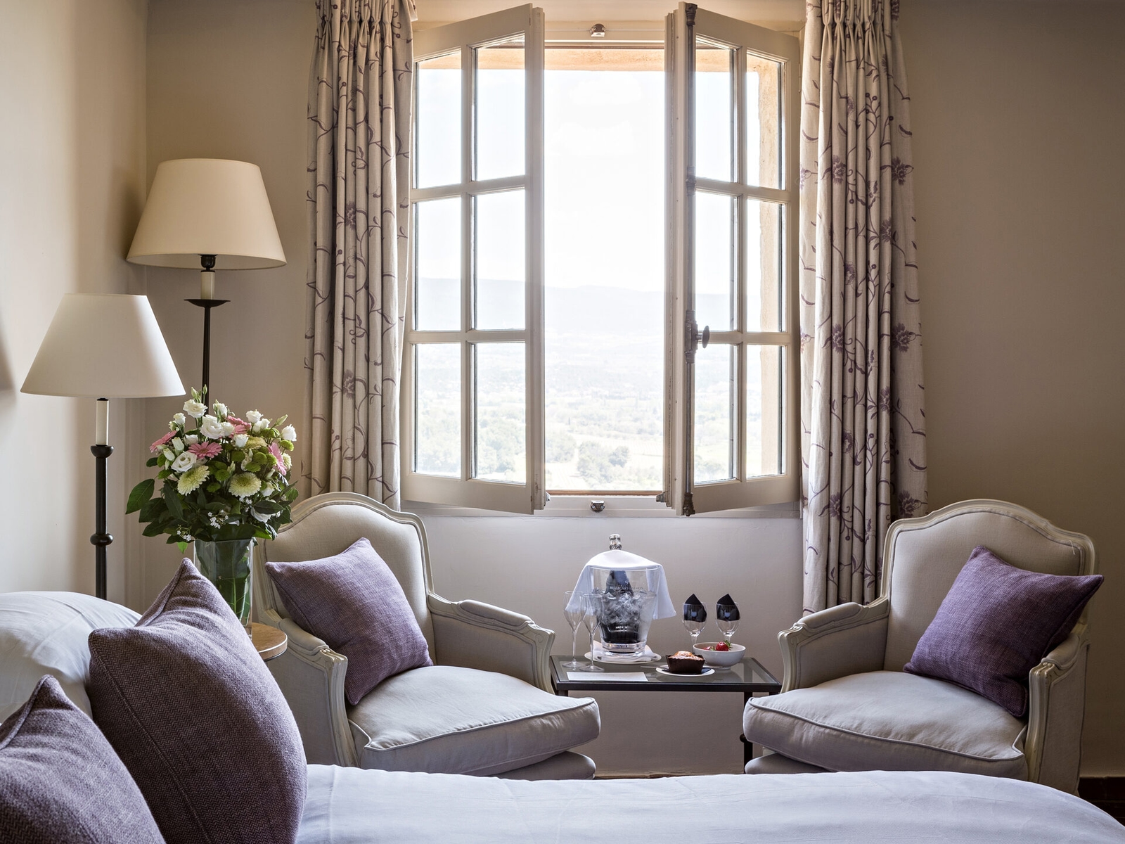 There are 28 rooms to choose from, with beautiful views of Mount Ventoux or the Rhône Valley, and seven suites, some of which have their own terrace. There is also a small village house that is ideal for two couple of small families.