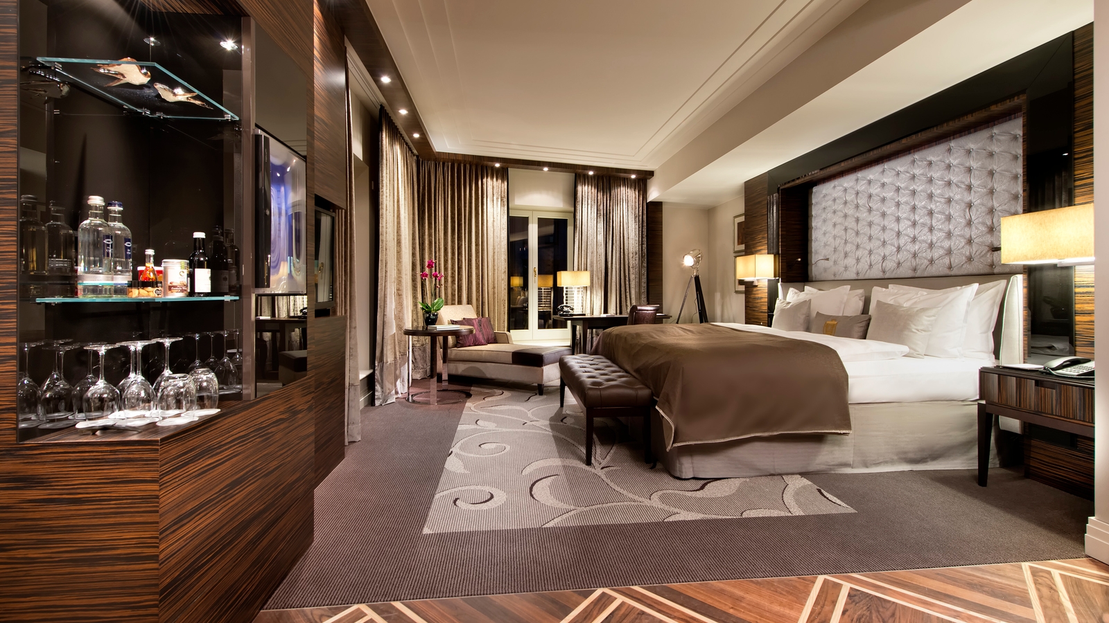 Indulge in exquisite French and regional cuisine at the hotel’s various restaurants. You’ll find brasserie fare at Oscar’s, creations inspired by French haute cuisine at Restaurant Français, sumptuous breakfasts and buffets at Restaurant Hofgarten and whiskies and cocktails at Autorenbar. And if you’re looking for an indulgent smoke, settle into a sofa beside the crackling fire in The Cigarru,m which can be rented on request.