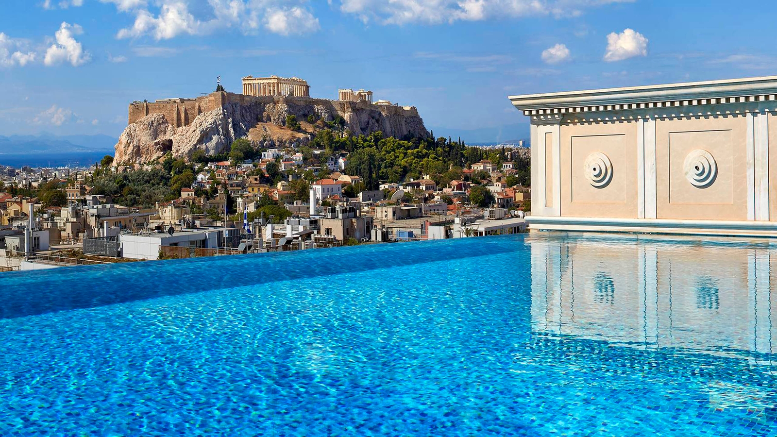 There are 102 spacious rooms and suites, topped of on the ninth floor with the sprawling Penthouse and its incredible private rooftop pool with views out over the city to the Acropolis.