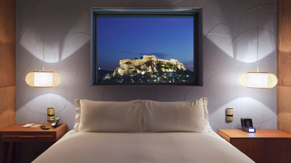 There are 79 rooms and suites, all of which feature their own art installation and surrealist custom furniture, as well as comprehensive soundproofing, fine beds and blackout blinds. The Penthouse Suite is particularly noteworthy for its fine views to the Acropolis.