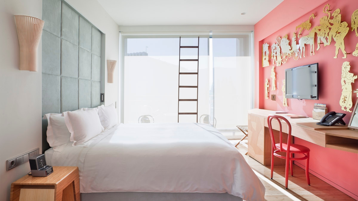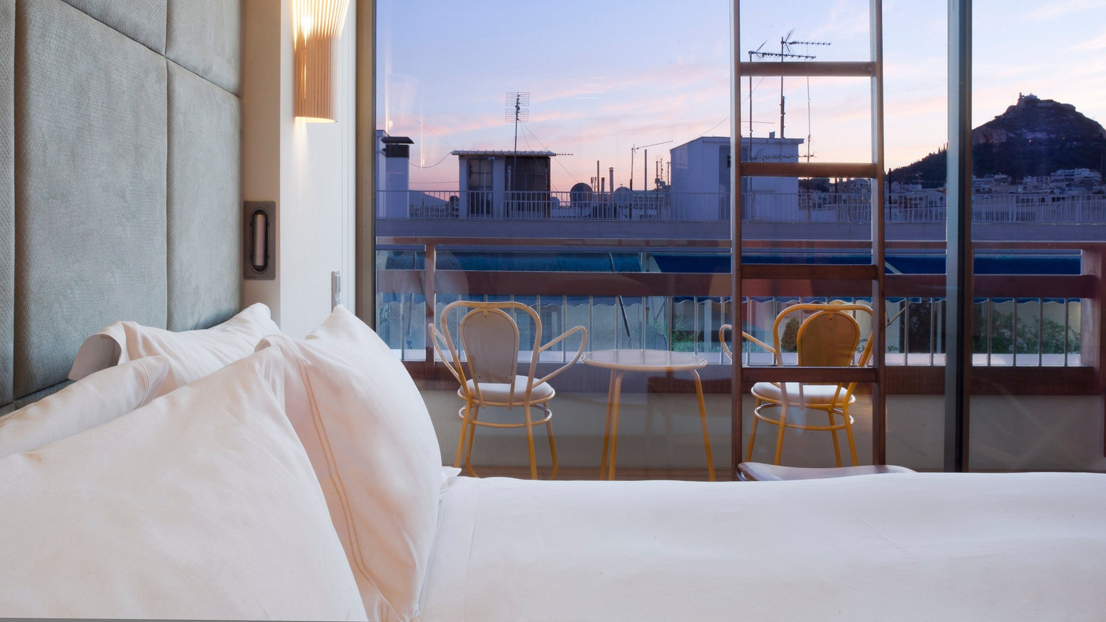 There are 79 rooms and suites, all of which feature their own art installation and surrealist custom furniture, as well as comprehensive soundproofing, fine beds and blackout blinds. The Penthouse Suite is particularly noteworthy for its fine views to the Acropolis.