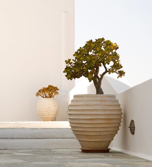 The hotel consists of 15 rooms and suites, each beautifully decorated with traditional handmade furniture, unique artwork and a crisp white colour scheme. All come with sea views and many feature Jacuzzies on their private terrace.