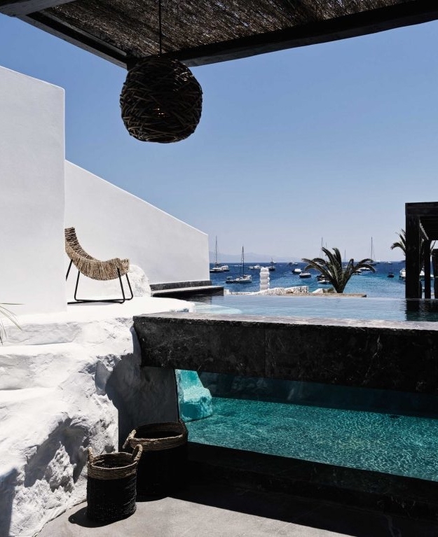 Modern elegance harmoniously blended with the Greek island's soulful essence