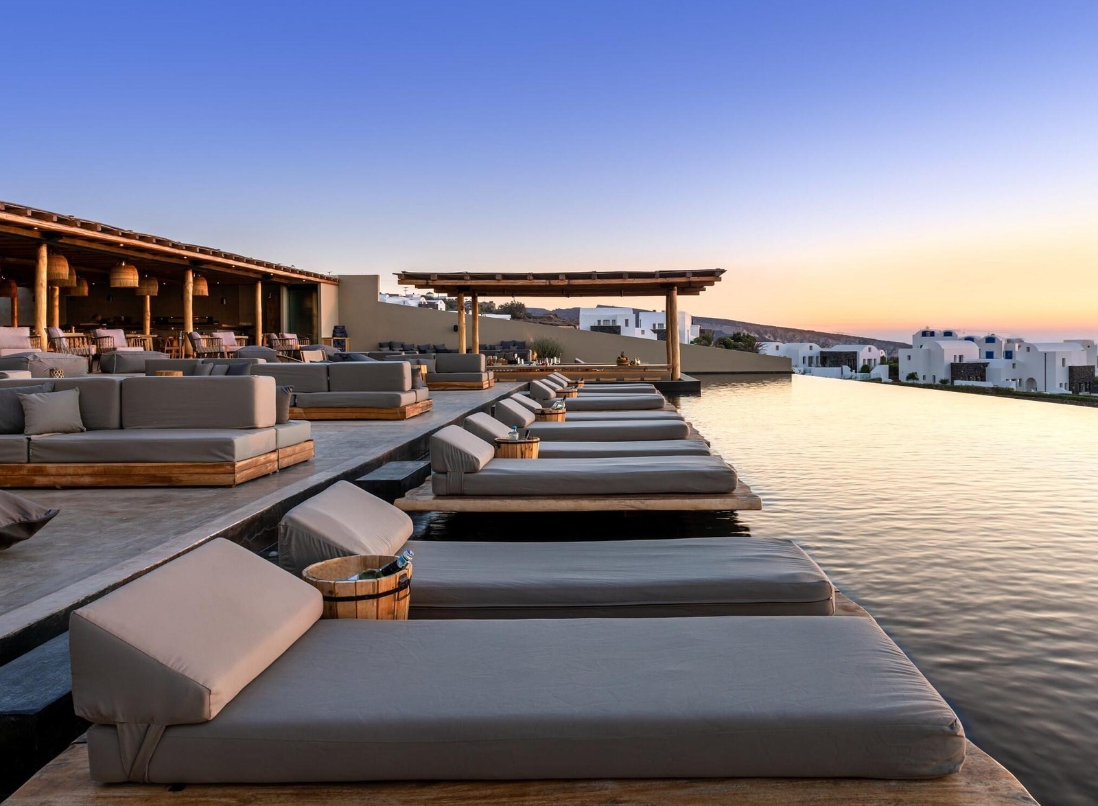 Dine at either of the two on-site restaurants, choosing from street food and meat cuts sourced from around the world at Beefbar Santorini, or exquisite sushi and Mediterranean food selections at Pacman Sunset Restaurant.