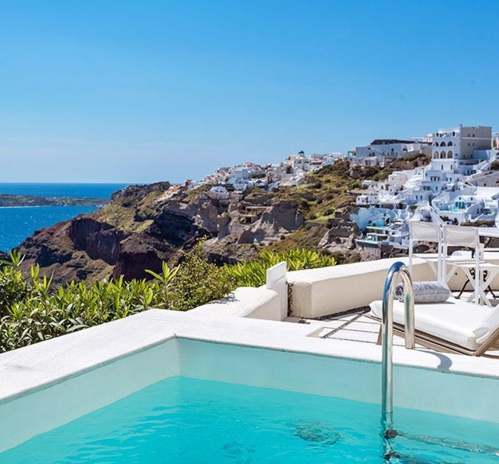 Enveloped by the sparkling Aegean and the dramatic beauty of Santorini, Canaves Oia Suites invites you to a world of exquisite elegance. Here, 26 luxurious suites offer the ultimate in modern facilities and breathtaking views of the Caldera and the Aegean Sea, each featuring spacious living areas and private plunge pools. Décor is sophisticated and minimalist, playing off the iconic architecture of the region, with modern touches for ultimate relaxation.
