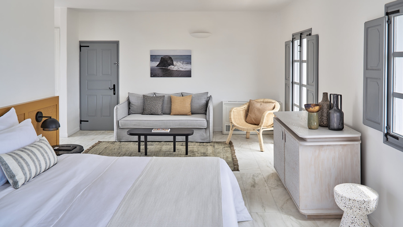 The 59 suites and villas are spacious and offer views out over the garden, vineyards, village or Aegean sea. Some suites include terraces, pools and outdoor Jacuzzis, so that guests can enjoy both the luxury of their suites and the outdoors in privacy.