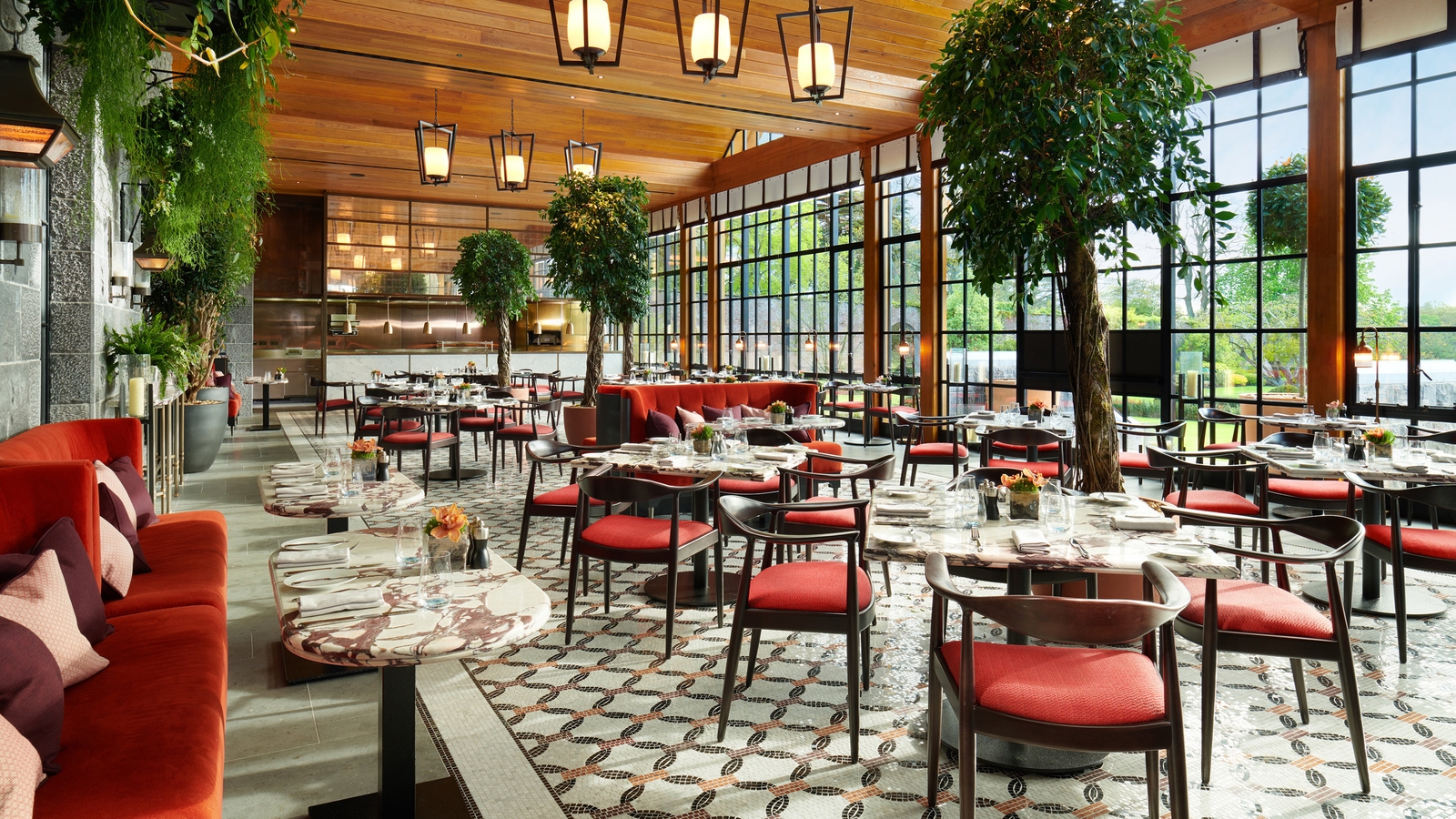 The hotel’s rooms and suites are traditional and elegant in design with beautiful artwork, marble bathrooms and views of the gardens, river, golf course or courtyard. There are plenty of options for food and drink, from formal dining at The Oak Room and The Carriage House to light bites, craft beer and whisky at the Tack Room. The Drawing Room which overlooks the formal gardens is where you’ll enjoy breakfast and can indulge in afternoon tea.