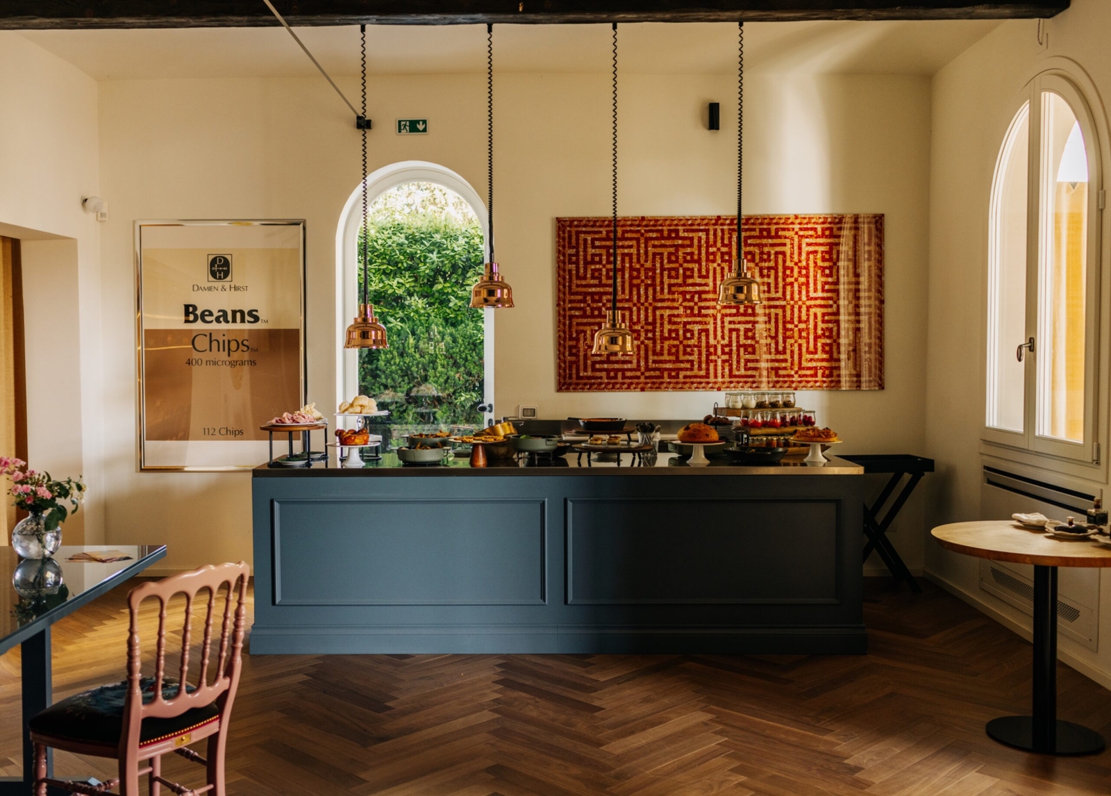 Mornings begin with an extraordinary Emilian breakfast, served communally and prepared using regional produce. Stroll through the grounds dotted with sculptures or take a dip in the pool. For those seeking a little movement, there’s tennis on the private court or a visit to the gym, where Technogym equipment is set amidst a striking backdrop of vintage cars, motorbikes and contemporary art.