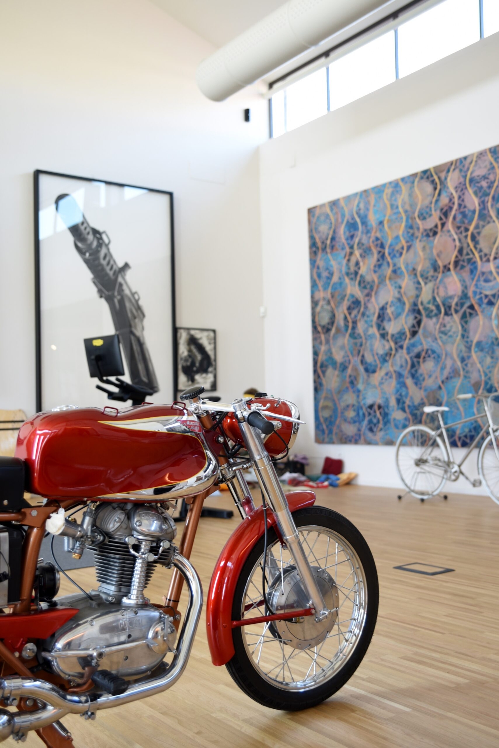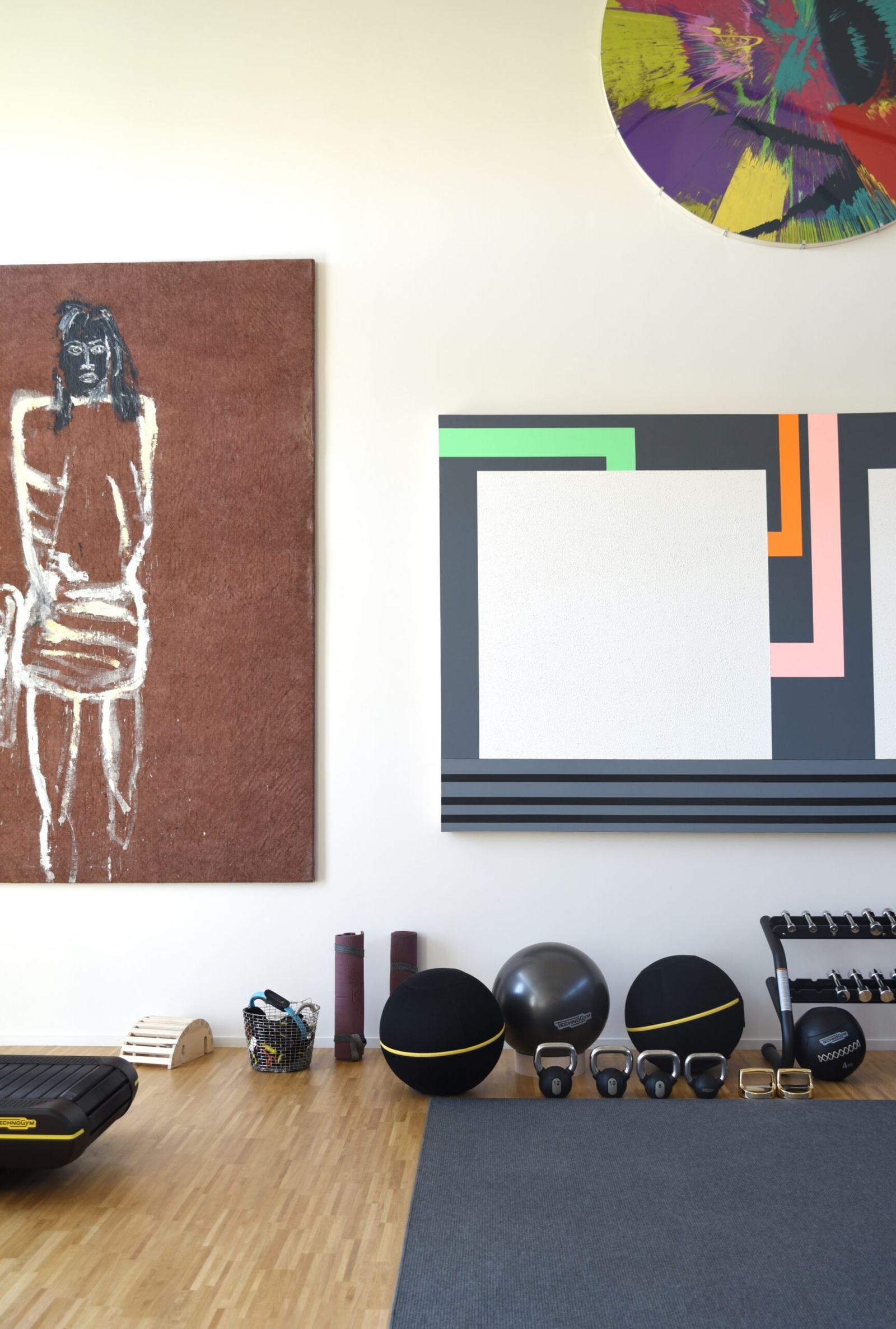 Stay active with Technogym equipment set within a space adorned with the owners' private collection of vintage cars, motorbikes and modern art