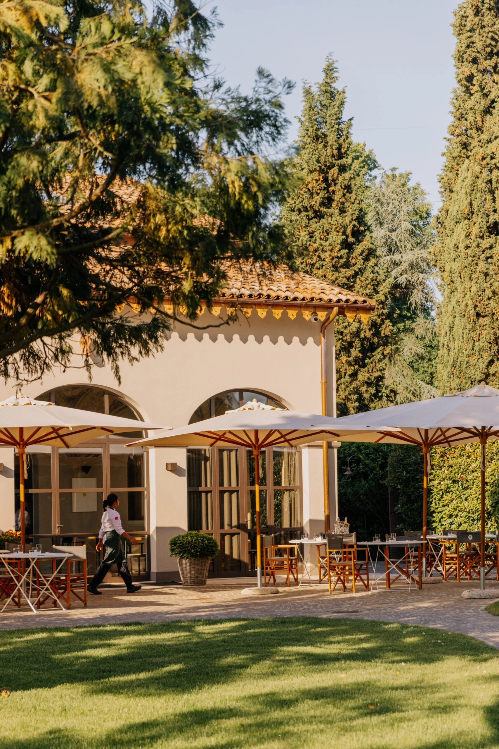 Mornings begin with an extraordinary Emilian breakfast, served communally and prepared using regional produce. Stroll through the grounds dotted with sculptures or take a dip in the pool. For those seeking a little movement, there’s tennis on the private court or a visit to the gym, where Technogym equipment is set amidst a striking backdrop of vintage cars, motorbikes and contemporary art.