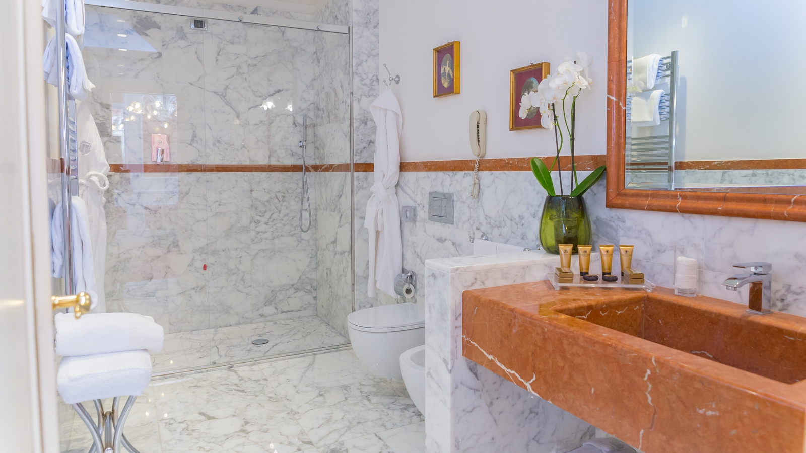 Consisting of 106 guest rooms, all elegantly decorated and furnished in keeping with the hotel’s artistic style, guests will enjoy a blend of typical Italian style reinforced by modern comfort, as well as lovely city views. A range of newer junior suites and deluxe rooms offer something a little bit different with their classic 18th-century French decor.