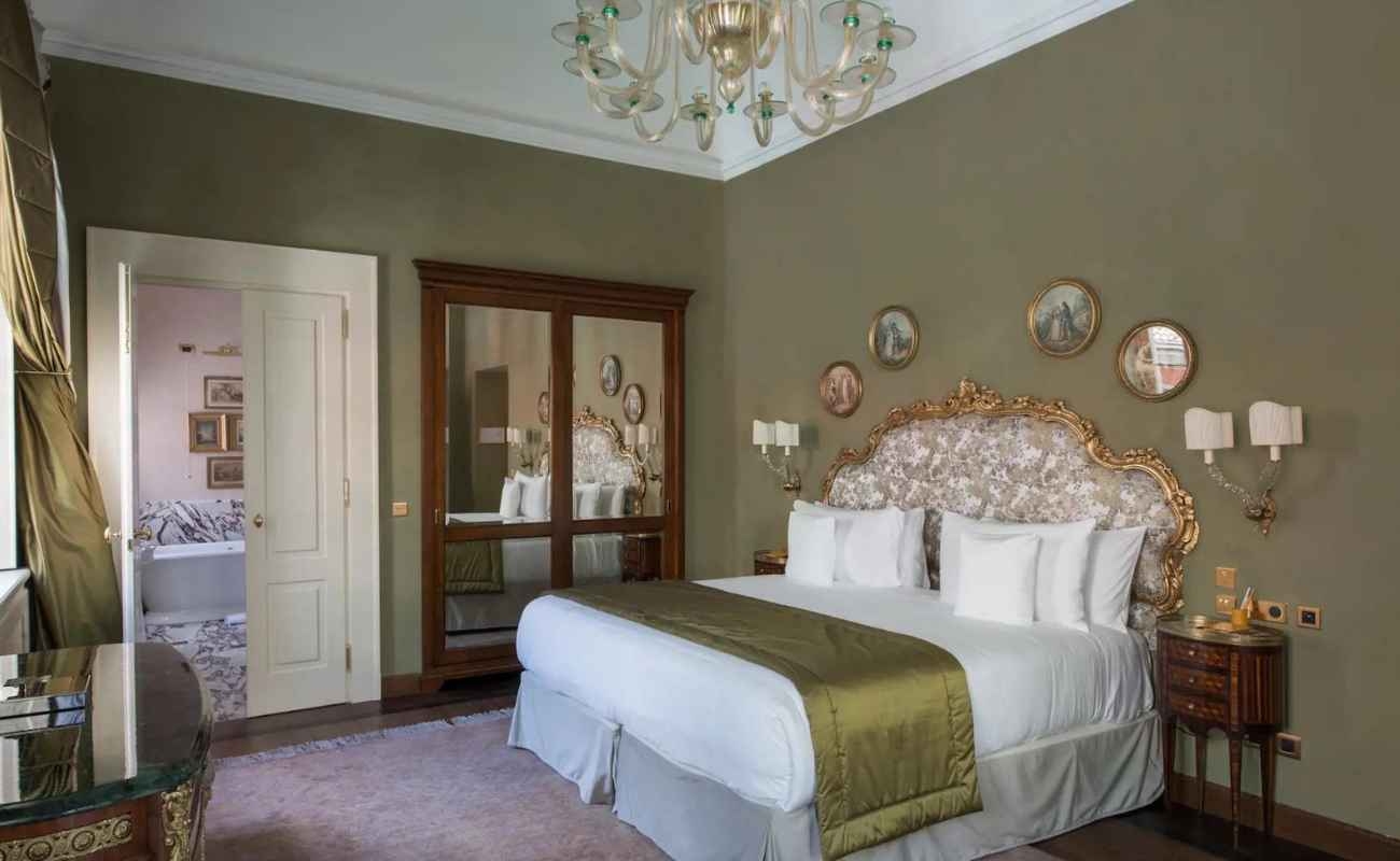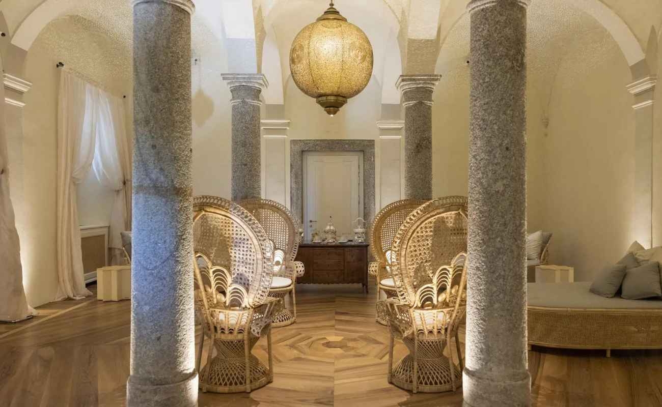 Set across the original palazz (building) and within an additional private villa, there are 20 rooms in total in this magnificent property. The eight rooms of the palazz are decorated in jewel-toned walls, in-keeping with the interiors from yesteryear, with imposing 200-year-old oak beams and lamps of the finest Venetian silk overhead. The Villa has twelve extraordinary rooms and suites with high ceilings, ornate stuccos and traditional floors from the building’s 18th-century origins combined with modern comforts for a truly luxurious stay.