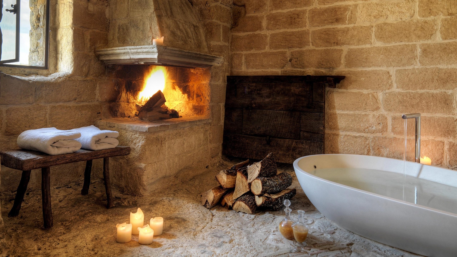Decor is simple so as not to detract from the natural features of the cave; crisp white linen, hand-made pottery and the flicker of candles is all they need to shine. Some of the rooms feature freestanding bath tubs and old troughs that have been turned into sinks.