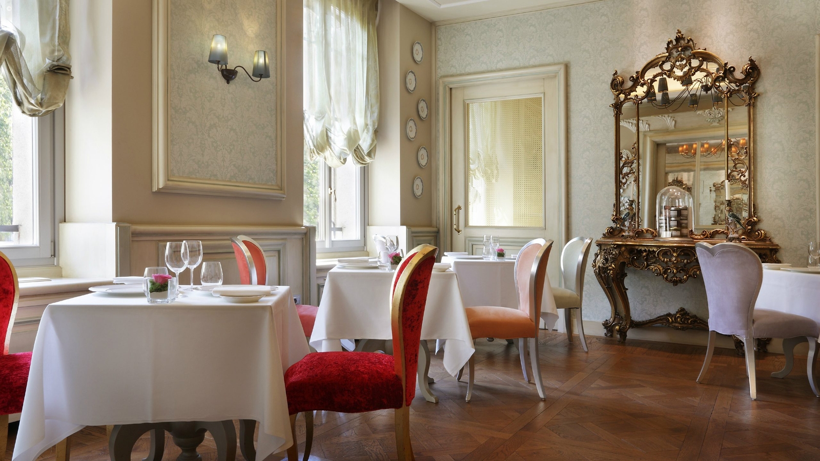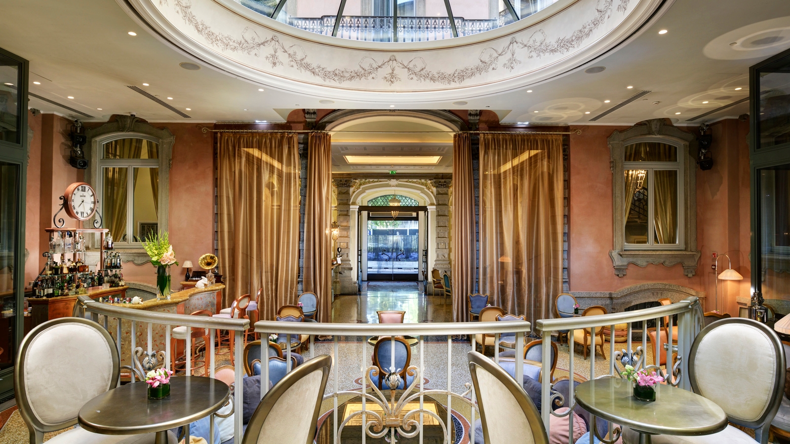 Located in the heart of the city, the hotel is housed within an early 20th-century art nouveau building, and draws its inspiration from the world of fairytales and opera. Pastel colors adorn the walls of the 77 rooms, enhanced by floral patterns and butterflies, mosaics on the floors, mirrors and princely alcoves.