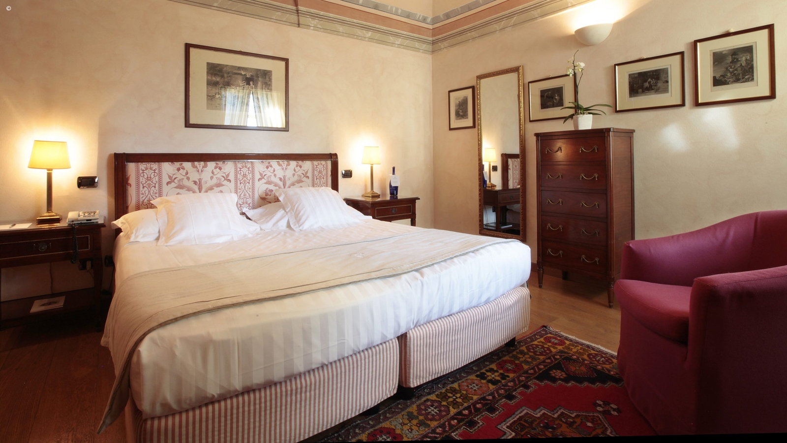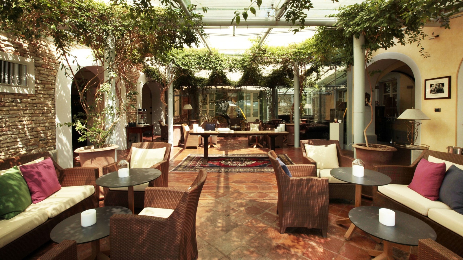 The hotel’s elegant rooms and suites are full of character, each one unique in its design. Some come with ancient fireplaces and private gardens, while suites have their own balconies and Jacuzzi. Decor is elegant and refined and befitting of its origins as a monastery.