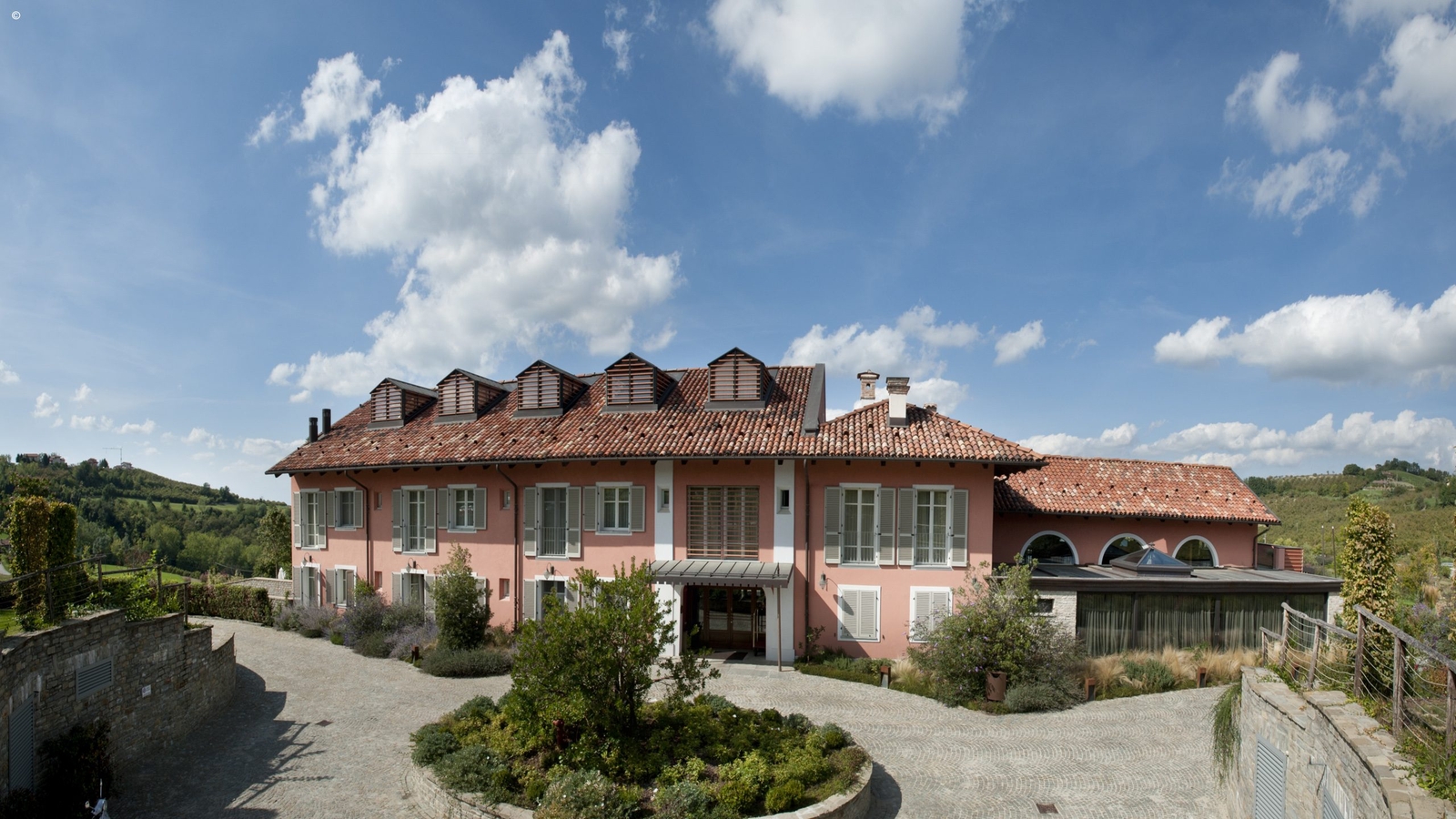 In the hills of Piedmont’s Langhe region, close to the historic town of Alba, the Villa d’Amelia is a masterfully renovated 19th century country retreat surrounded by hazelnut groves, vineyards and green woodland.