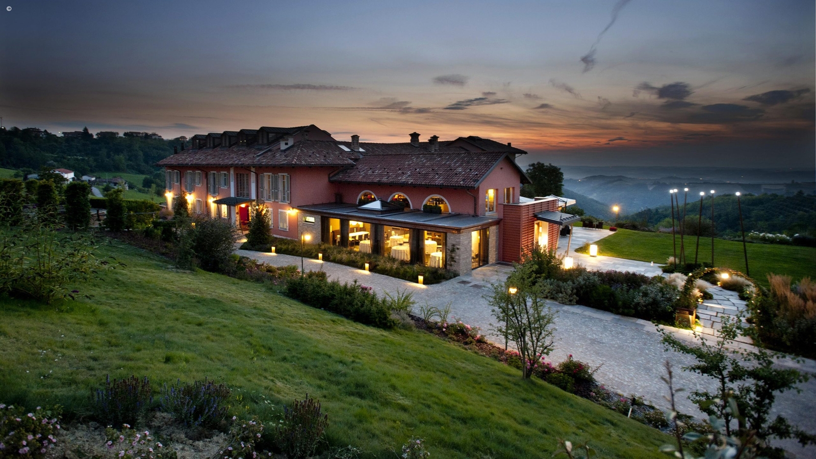 In the hills of Piedmont’s Langhe region, close to the historic town of Alba, the Villa d’Amelia is a masterfully renovated 19th century country retreat surrounded by hazelnut groves, vineyards and green woodland.