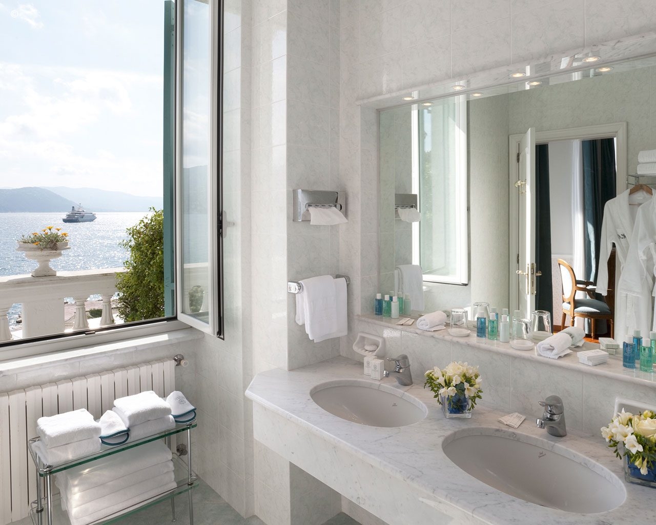 There are 78 rooms and suites, many with balconies overlooking the Golfo del Tigullio or the verdant Mediterranean park. Pale pastel tones prevail and restored stucco work and wooden flooring recreate the grace of the original interiors, the august atmosphere enhanced by contemporary comforts.