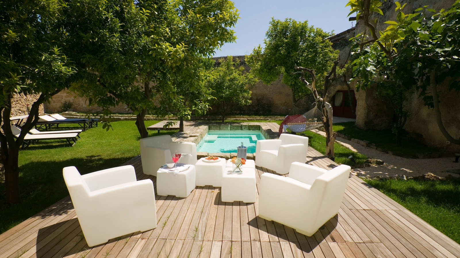 For the ultimate in relaxation, there’s a wonderful spa at the luxury masseria in Puglia, including a romantic indoor pool and a Turkish bath. Outside you’ll find another swimming pool, a golf course, bar and four restaurants specialising in creative Puglian cuisine with fresh ingredients plucked straight from the organic farm and sea. One of the dining venues is a short distance away beside the private sands of the Coccaro Beach Club, which is rated among the best such clubs in the Mediterranean.