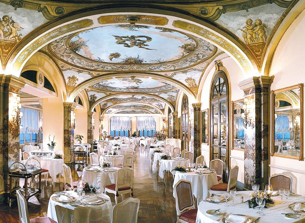 Upon entering, you’ll be greeted by a vintage concierge desk before being led to one of the 79 tastefully decorated rooms or suites. Interiors encompass antique furniture, oil paintings and frescoed ceilings, with expansive windows facing the garden or sea. Some include private terraces and pianos, along with original period elements and separate living spaces.
