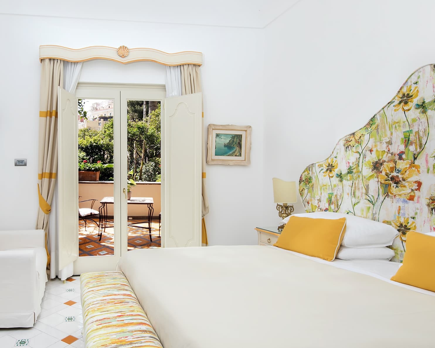 In the heart of Positano lies the grand Palazzo Murat, where modern design elements perfectly complement the historical nineteenth-century architecture. Immerse yourself in the unique story of each of the 33 elegantly furnished rooms and admire the Castiglioni Arch and the vivid lemon yellow painted window frames, all with an incomparable view of Positano and the majolica dome of the Church of Santa Maria, a symbol of the city.