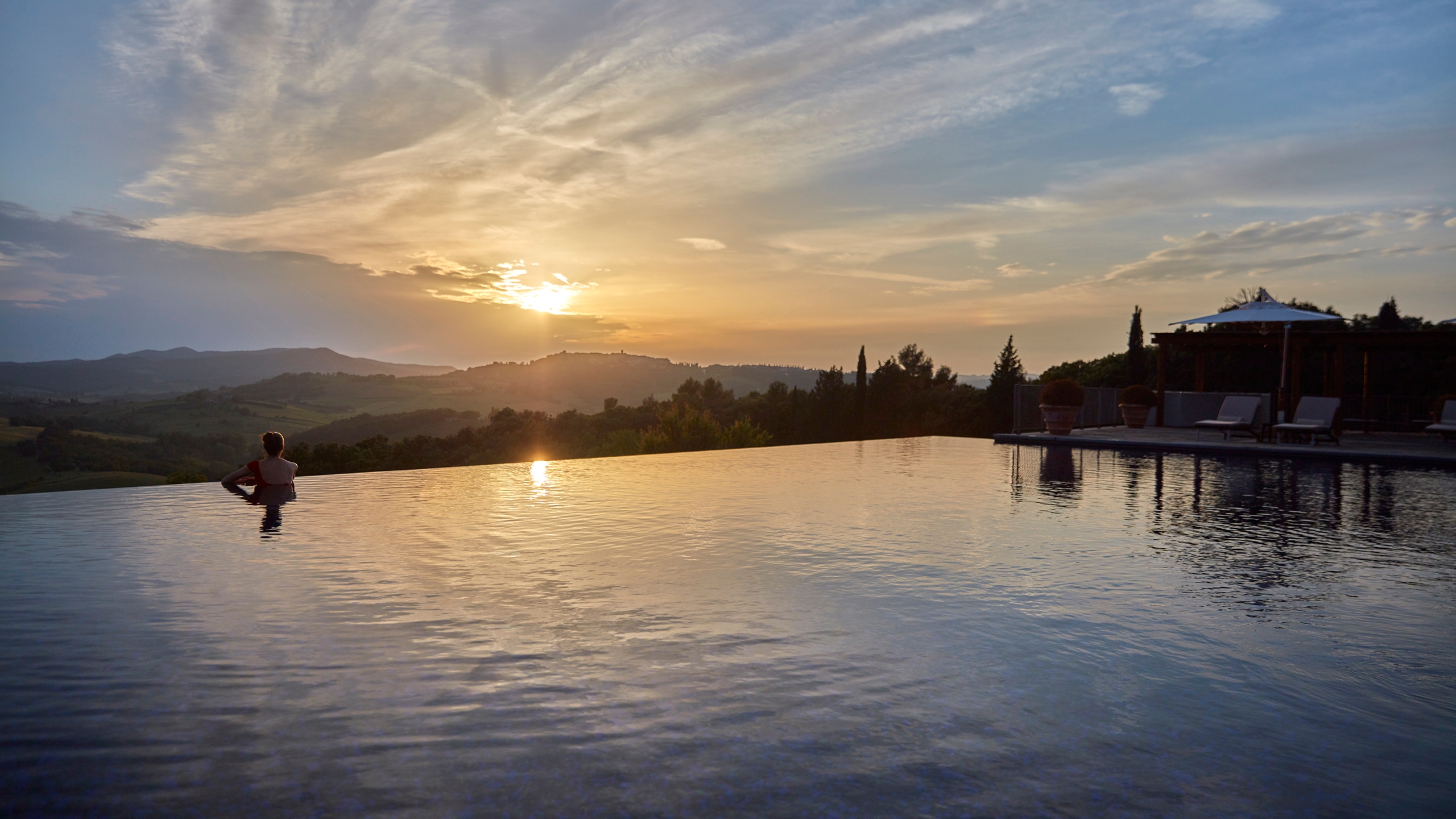 The former wine cellar now houses the spa and guests can relax and unwind with a treatment from a menu inspired by local ingredients such as rosemary, grapes and olive oil. Take a dip in the outdoor infinity pool and enjoy the views or take advantage of the activities on offer including cooking classes and truffle hunting.