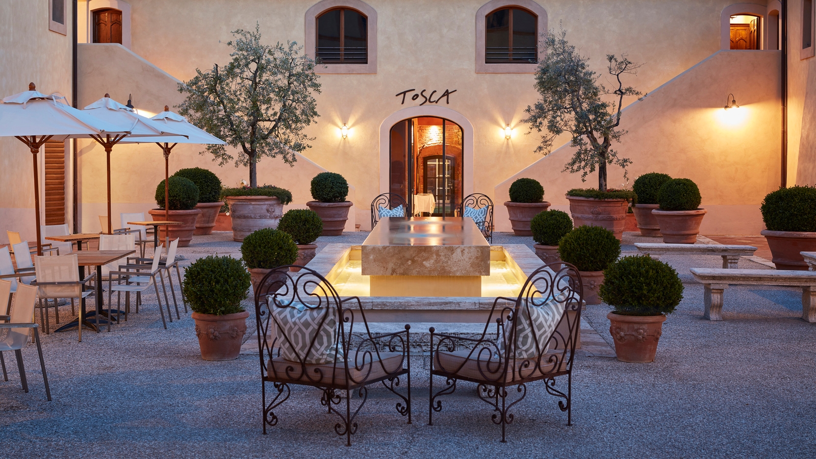 There are two restaurants with a focus on honest Tuscan food, so expect home-made pasta, organic vegetables and locally sourced fish and game. With over 100 acres of vineyards, this is the perfect place for wine lovers, and Tosca restaurant has a large wall displaying hundreds of vintages from leading wineries in Tuscany and around the world.