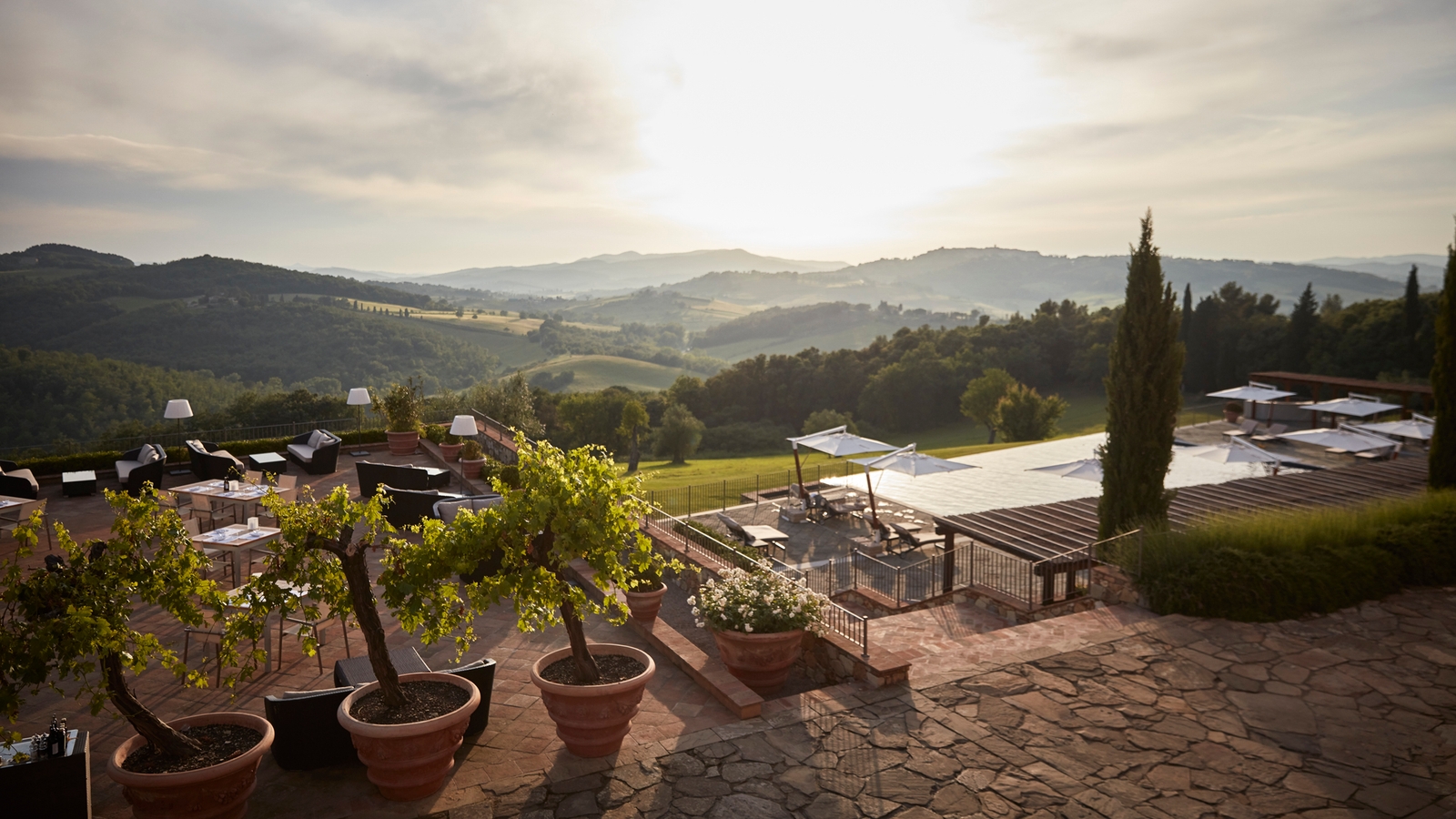 The former wine cellar now houses the spa and guests can relax and unwind with a treatment from a menu inspired by local ingredients such as rosemary, grapes and olive oil. Take a dip in the outdoor infinity pool and enjoy the views or take advantage of the activities on offer including cooking classes and truffle hunting.