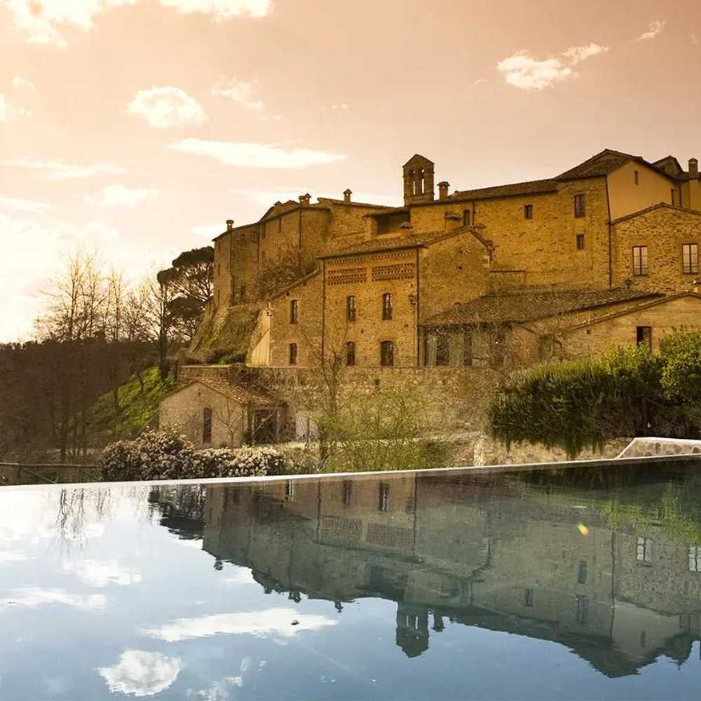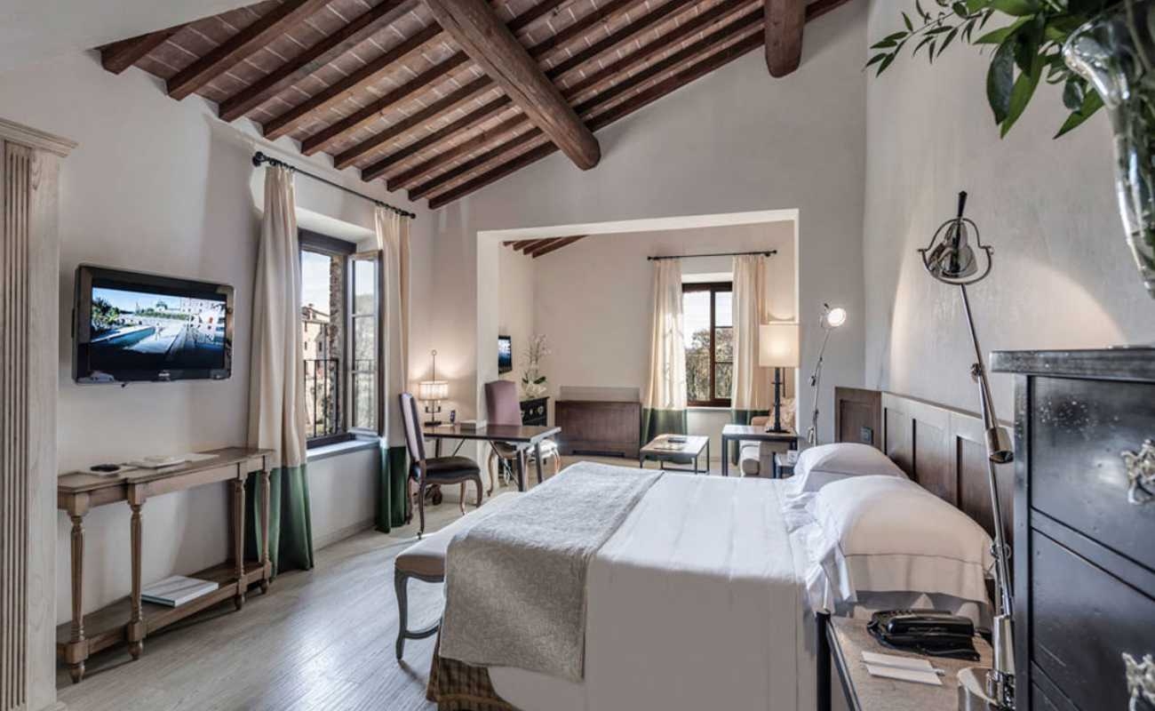 Within its thousand year walls guests are treated to a true Tuscan retreat which exudes a feeling of simple refinement and pure elegance complete with 74 rooms and suites and one large villa. All the accommodations are designed with contemporary comfort and rustic chic in mind.