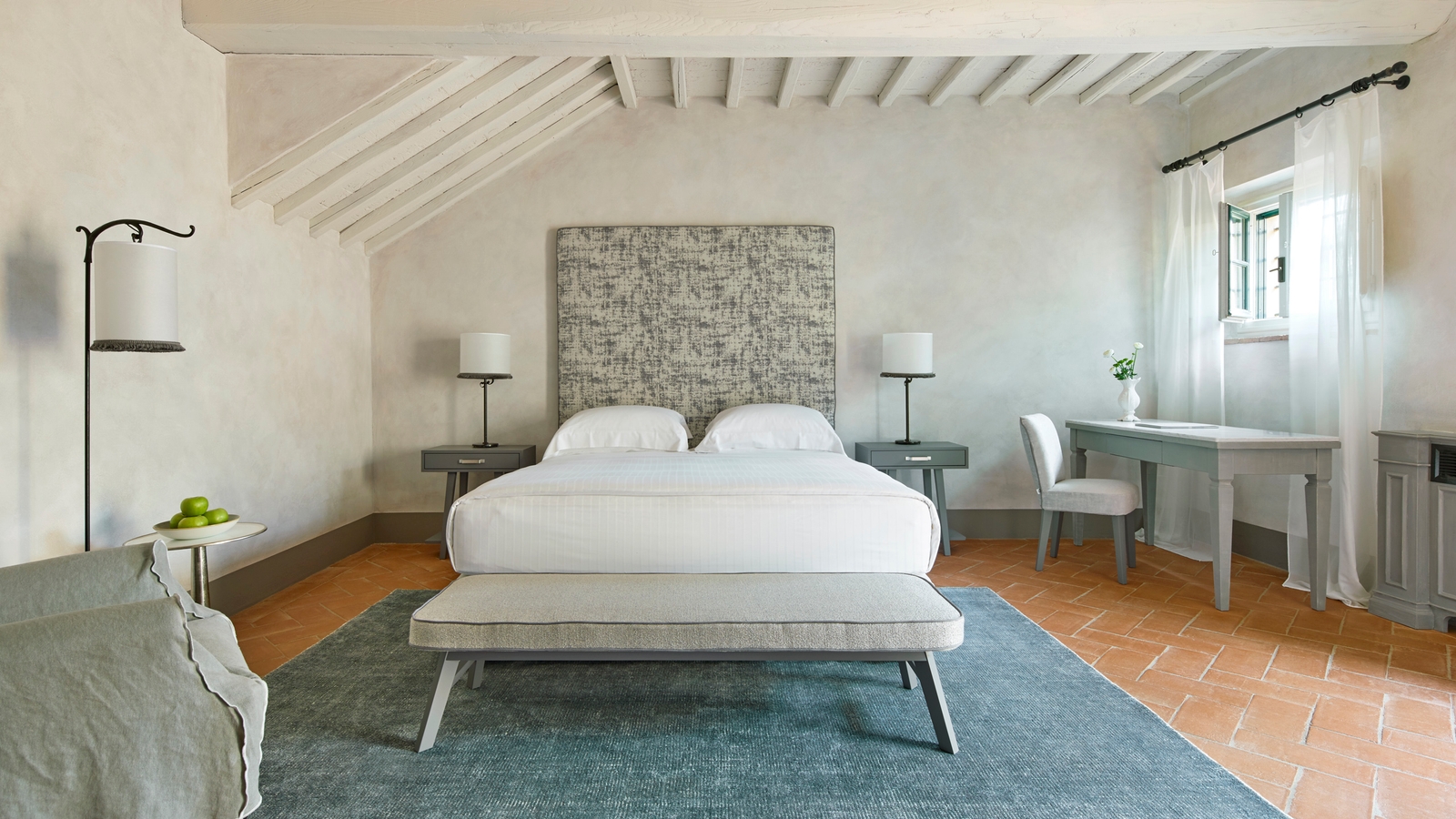 Suites, some of which feature their own terraces, have each had interiors restored to recreate the original decor, which include hand painted ceilings and family crests. All the rooms rooms maintain their historic authenticity yet provide all modern comforts.