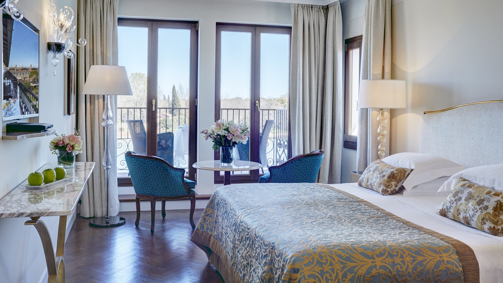 96 rooms and suites, split between the mid 20th century building and historic palazzo, are decorated in an opulent and impeccably Venetian style, with views out across the lagoon and cityscape or the lush Casanova gardens.