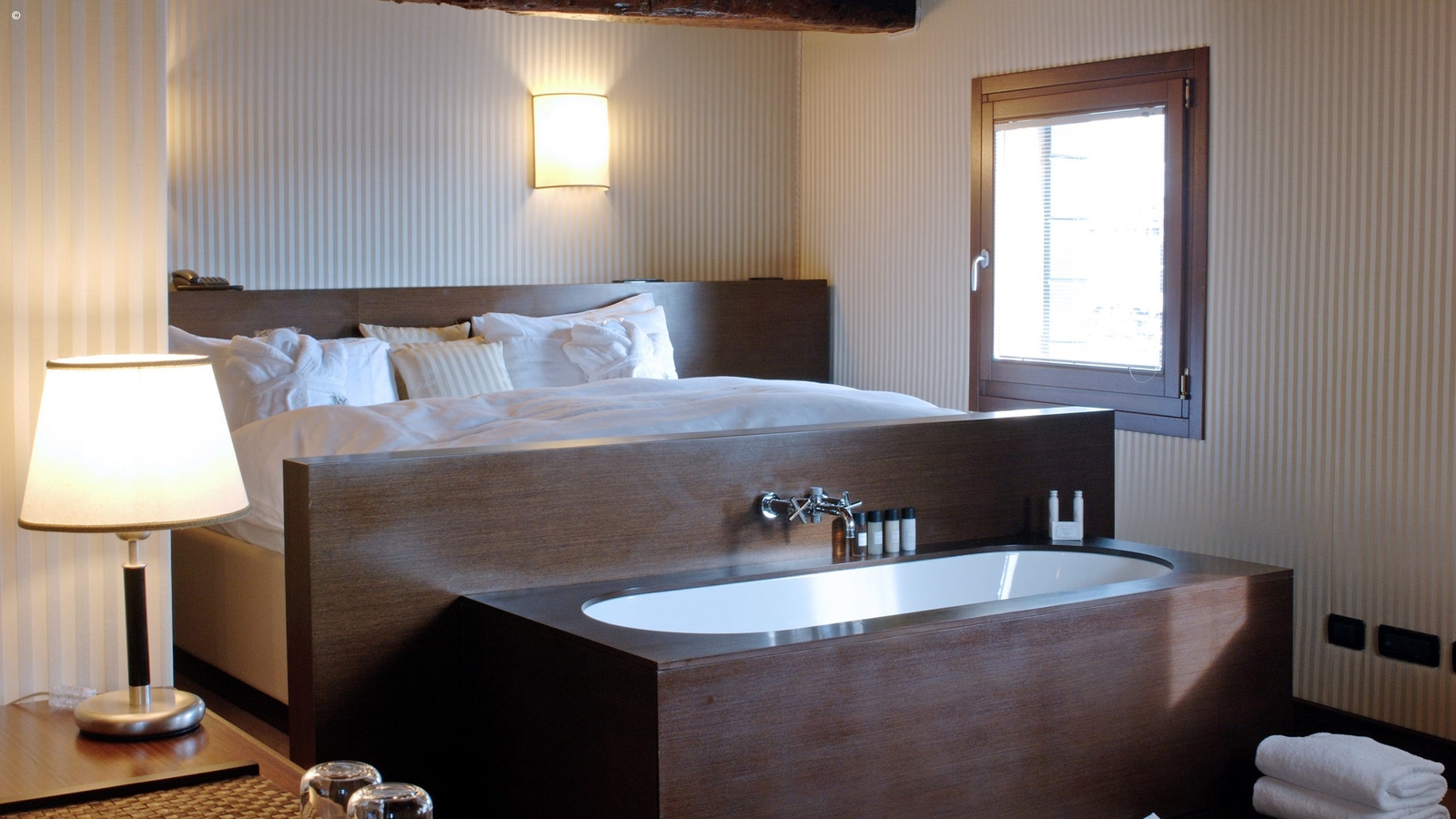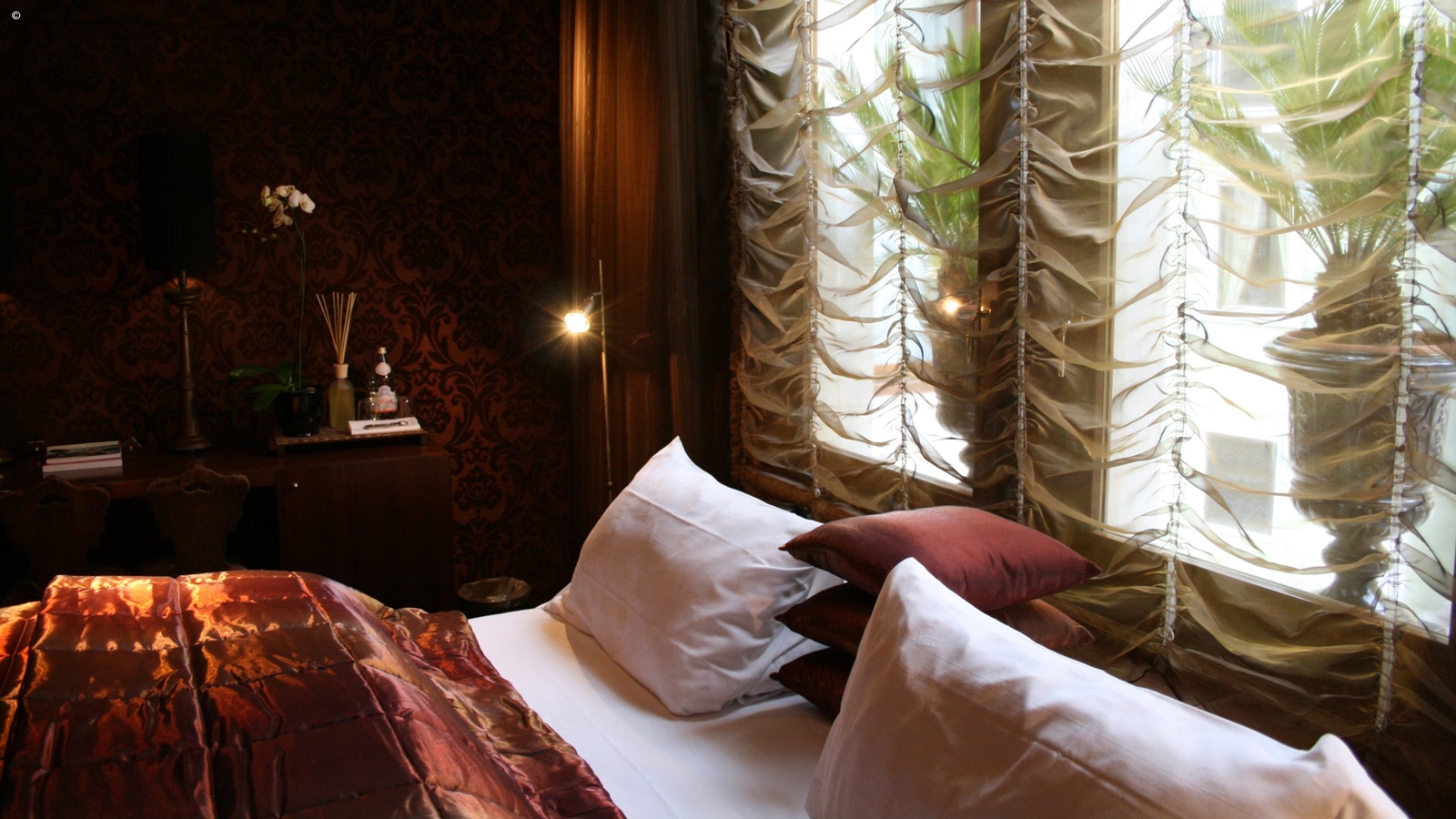 There are just twelve sumptuous rooms, including two suites and five themed rooms inspired by Venice’s history, such as the Oriental Room, a nod to the travels of Marco Polo, and the Doge’s Room, all deep-red damask drapes and gold accents.