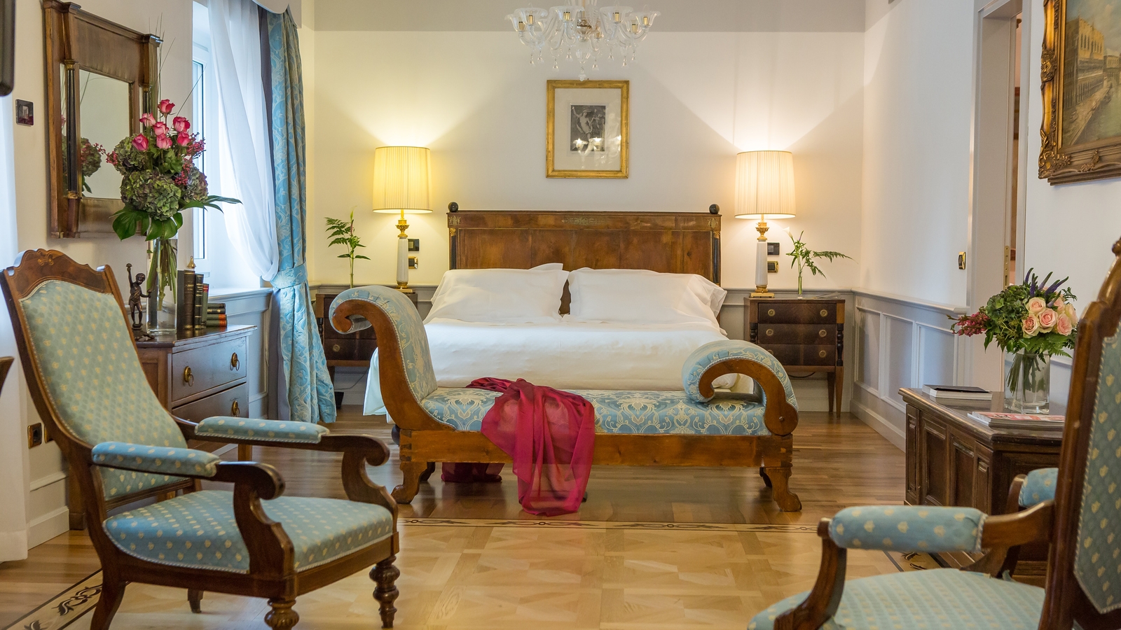 Each of the hotel’s 89 rooms are spacious, themed by traditional décor and furnishings that perfectly represent the timeless elegance of Italian style. The Due Torri’s suites are particularly in keeping with the heritage of the building, containing period furniture and precious tapestries, as well as hand-varnished parquet and marble bathrooms.