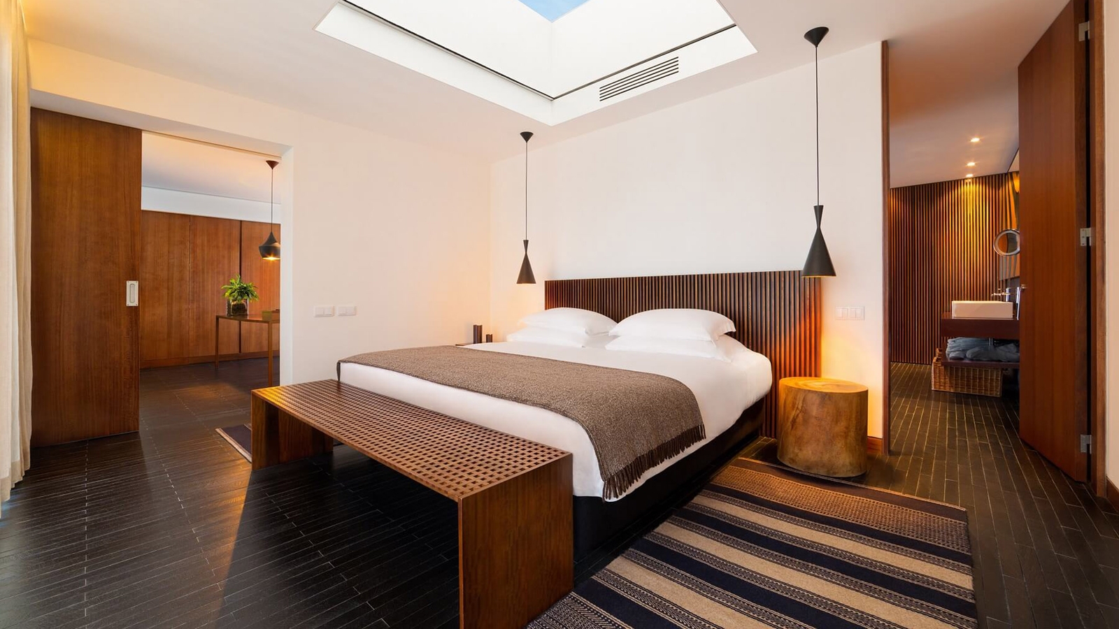 This exclusive retreat, set in the heart of Alentejo, effortlessly integrates modern architecture into nature. The interiors are designed by Marcio Kogan and feature artworks by Michael Biberstein.