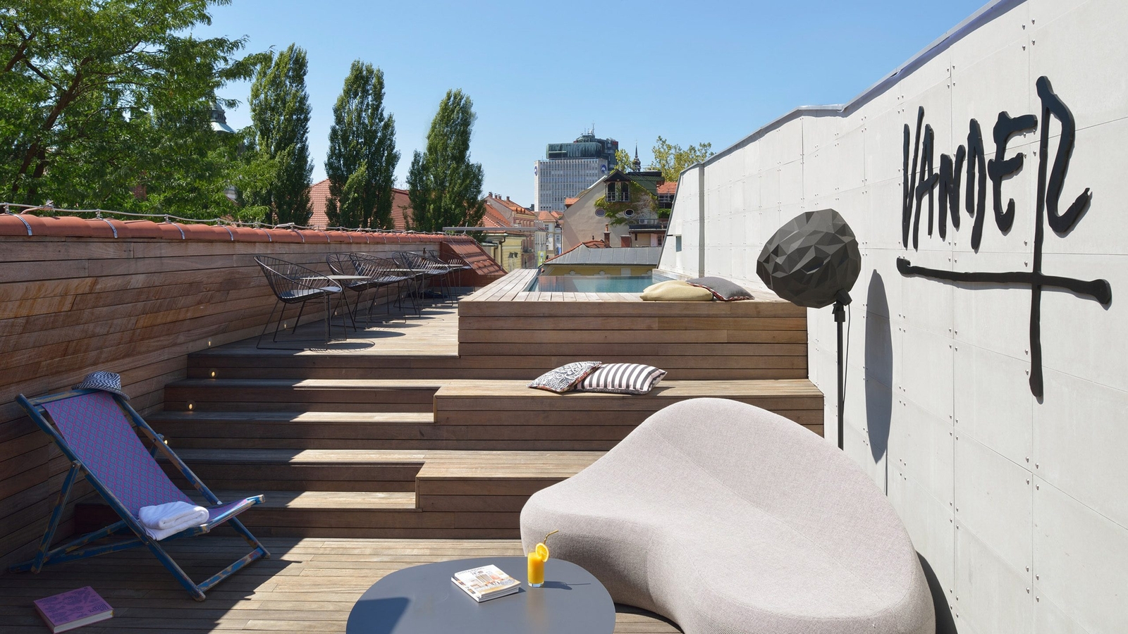 Atop it all is a wonderfully sunny roof terrace and infinity with views out across the city and a serene yoga studio.