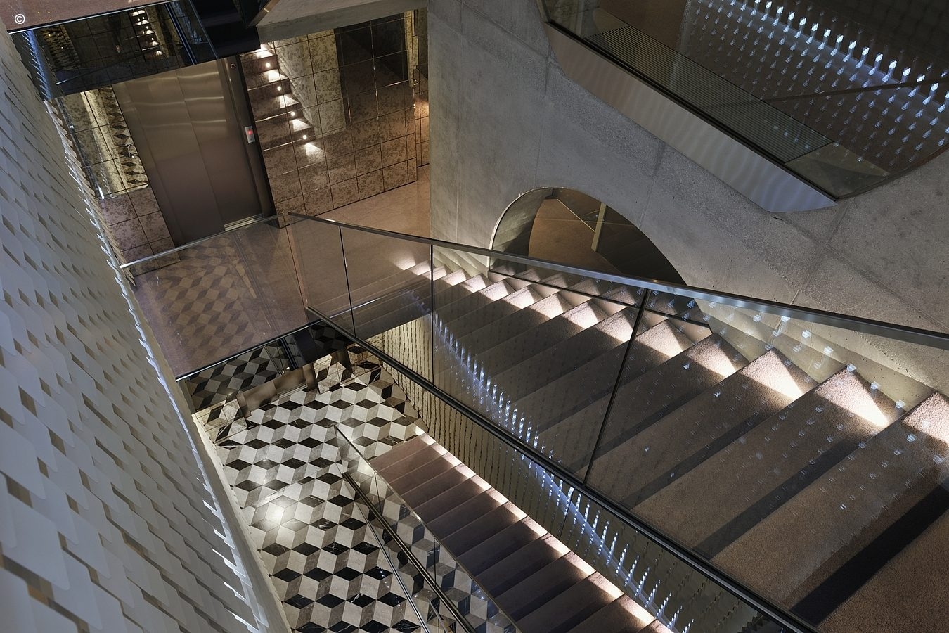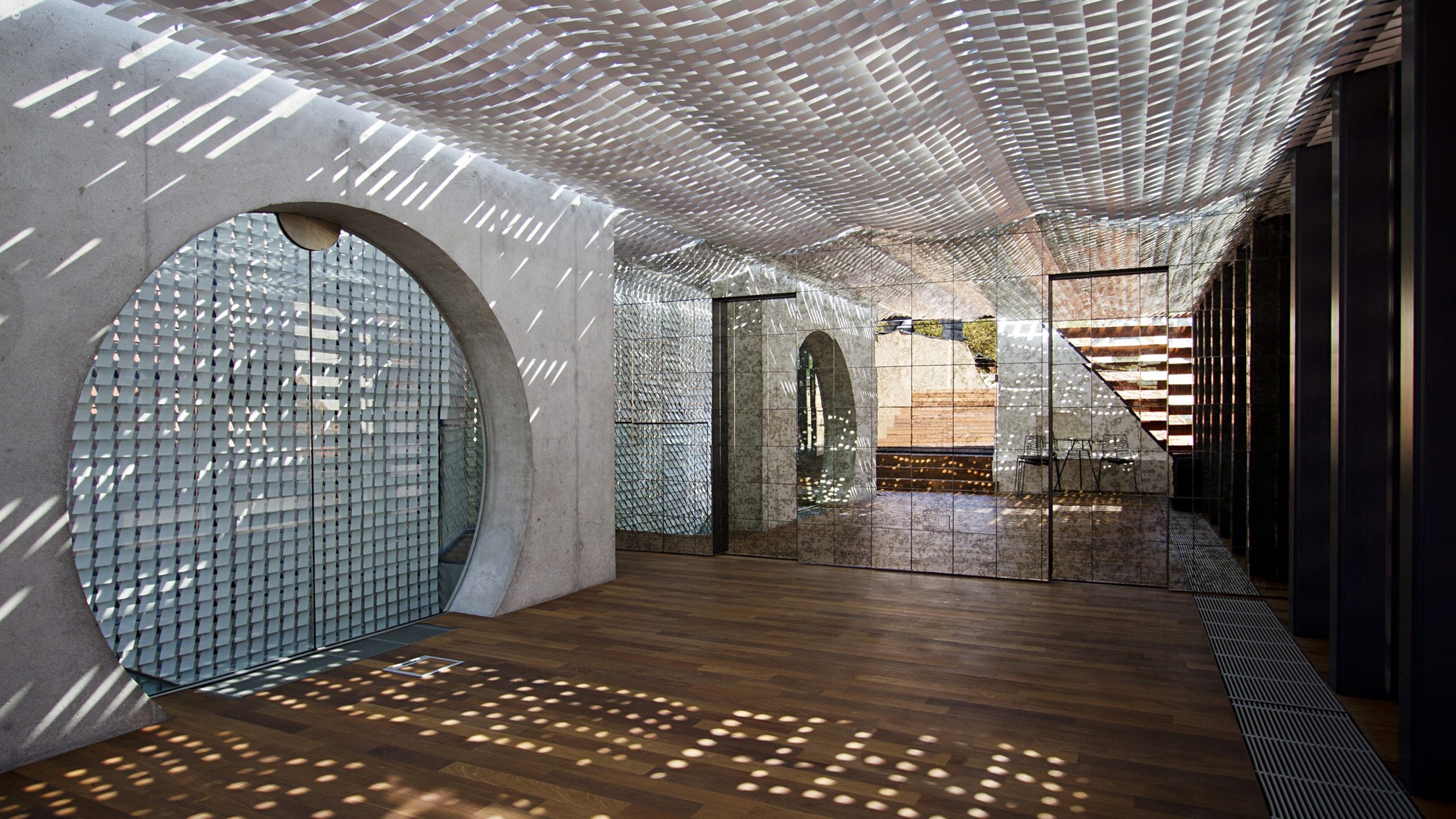 Taking up residence in four old town houses nestling under Castle Hill on the banks of the River Ljubljanica, a step off the pedestrianised street through the traditional terrace’s façade reveals a starkly contemporary interior.