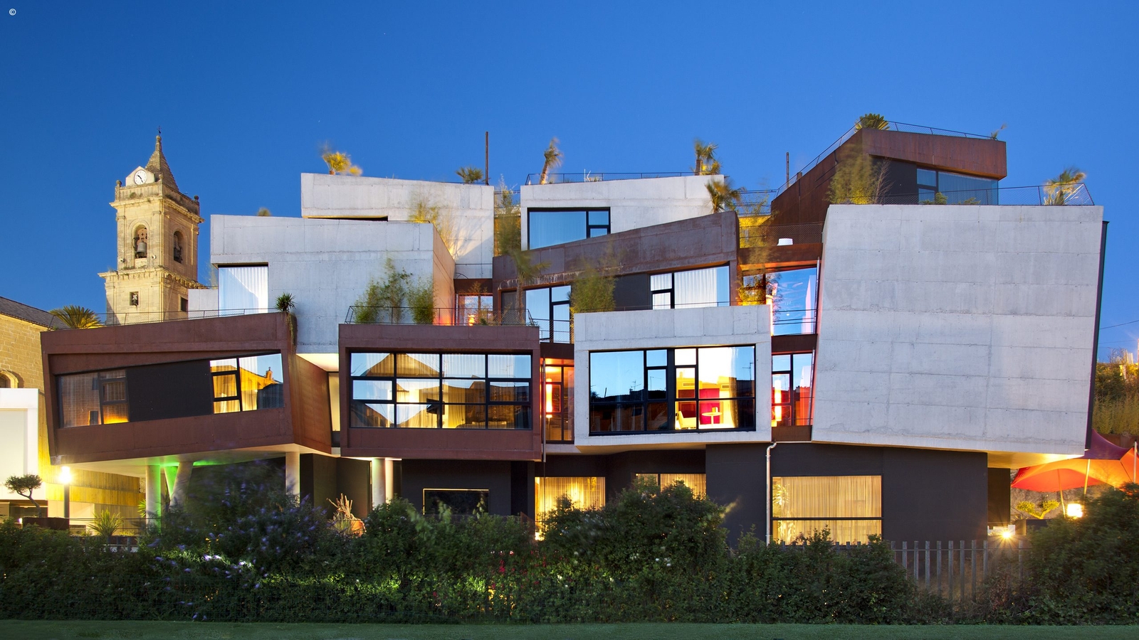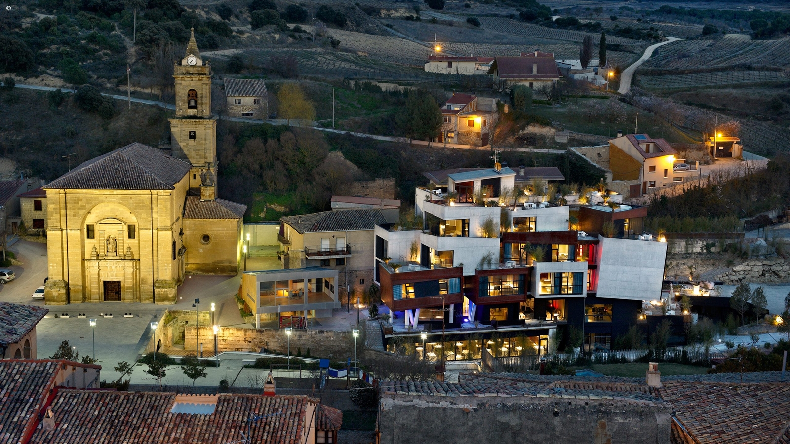In the charming village of Villabuena de Álava, surrounded by the Basque mountains and celebrated vineyards of Rioja, the Viura’s stacked cubed form contains cool and bright interiors that amplify the surroundings.