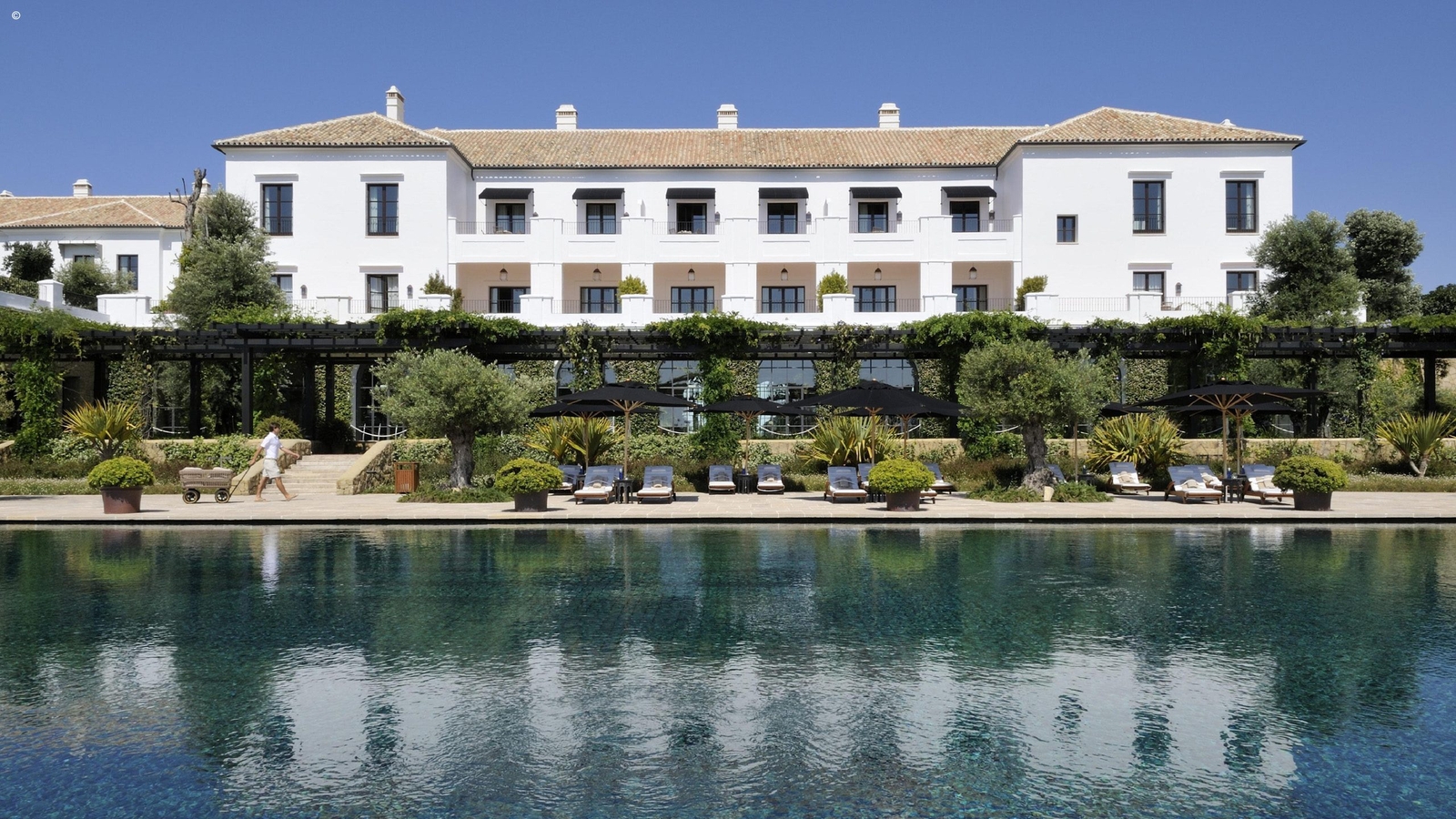 Hotel Finca Cortesin is a grand retreat inspired by traditional Andalusian architecture, with big, bright rooms and airy courtyards of palatial proportions, all accented with antiques and materials from Spain, Portugal, Morocco that give a timeless feel.