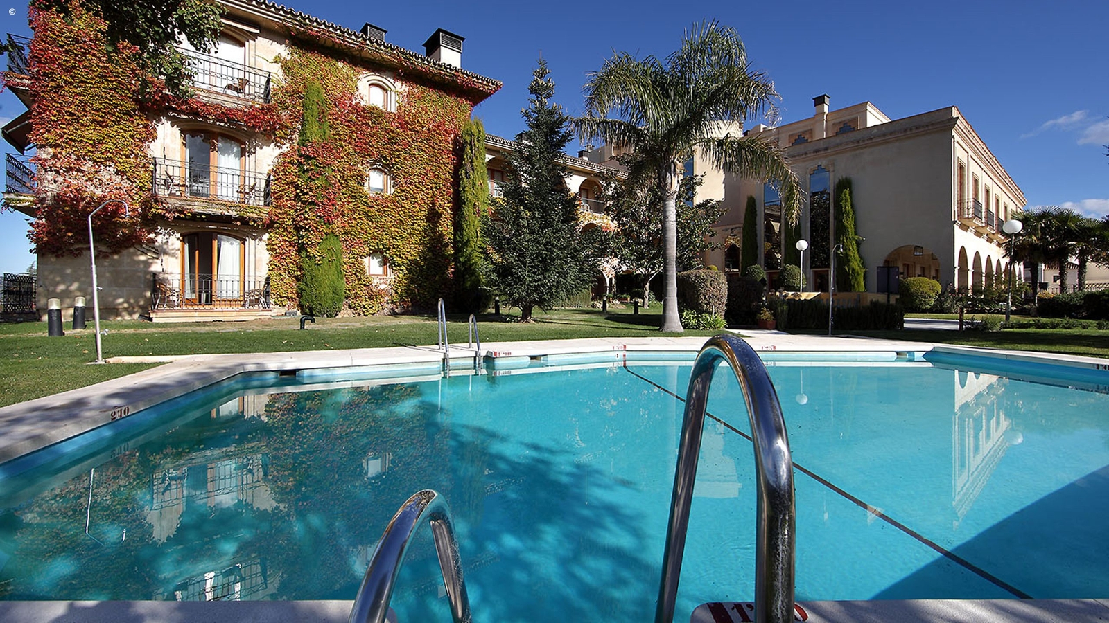 An outdoor pool sits within the hotel gardens, perfect for relaxing in after a day exploring the charming city of Ronda.